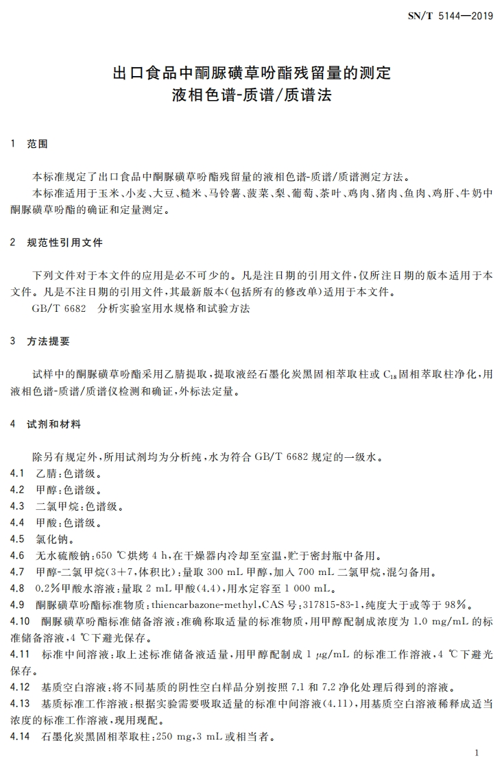 SN_T5144-2019出口食品中酮脲磺草吩酯残留量的标准测定液相色谱-质谱_质谱法348072@abc1个月前发布关注私信0.94MB21页032SN_T5144-2019出口食品中酮脲磺草吩酯残留量的标准测定液相色谱-质谱_质谱法此内容为付费资源,请付费后查看¥13¥19黄金会员免费钻石会员免费立即购买您当前未登录!建议登陆后购买,可保存购买订单付费资源 第1页 / 共21页 第2页 / 共21页 第3页 / 共21页 第4页 / 共21页 第5页 / 共21页 试读已结束,还剩16页,您可下载完整版后进行离线阅读 THE END播放器标准规范餐饮美食 喜欢就支持一下吧收藏