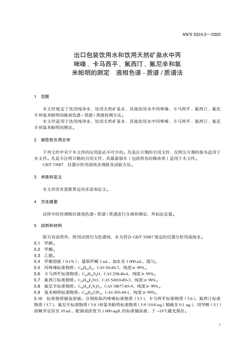 SN_T5324.2-2020出口包装饮用水和饮用天然矿泉水中丙咪嗪、卡马西平、氟西汀、氟尼辛和氯米帕明的标准测定液相色谱-质谱质谱法348072@abc1个月前发布关注私信1.19MB20页045SN_T5324.2-2020出口包装饮用水和饮用天然矿泉水中丙咪嗪、卡马西平、氟西汀、氟尼辛和氯米帕明的标准测定液相色谱-质谱质谱法此内容为付费资源,请付费后查看¥13¥19黄金会员免费钻石会员免费立即购买您当前未登录!建议登陆后购买,可保存购买订单付费资源 第1页 / 共20页 第2页 / 共20页 第3页 / 共20页 第4页 / 共20页 第5页 / 共20页 试读已结束,还剩15页,您可下载完整版后进行离线阅读 THE END播放器标准规范餐饮美食 喜欢就支持一下吧收藏