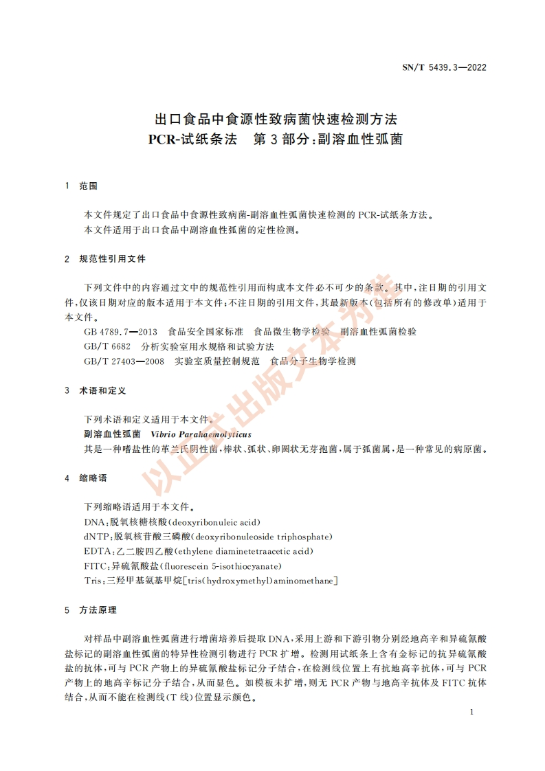 SN_T5439.3-2022出口食品中食源性致病菌快速检测标准方法PCR-试纸条法第3部分:副溶血性弧菌348072@abc1个月前发布关注私信0.75MB12页050SN_T5439.3-2022出口食品中食源性致病菌快速检测标准方法PCR-试纸条法第3部分:副溶血性弧菌此内容为付费资源,请付费后查看¥13¥19黄金会员免费钻石会员免费立即购买您当前未登录!建议登陆后购买,可保存购买订单付费资源 第1页 / 共12页 第2页 / 共12页 第3页 / 共12页 第4页 / 共12页 第5页 / 共12页 试读已结束,还剩7页,您可下载完整版后进行离线阅读 THE END播放器标准规范餐饮美食 喜欢就支持一下吧收藏