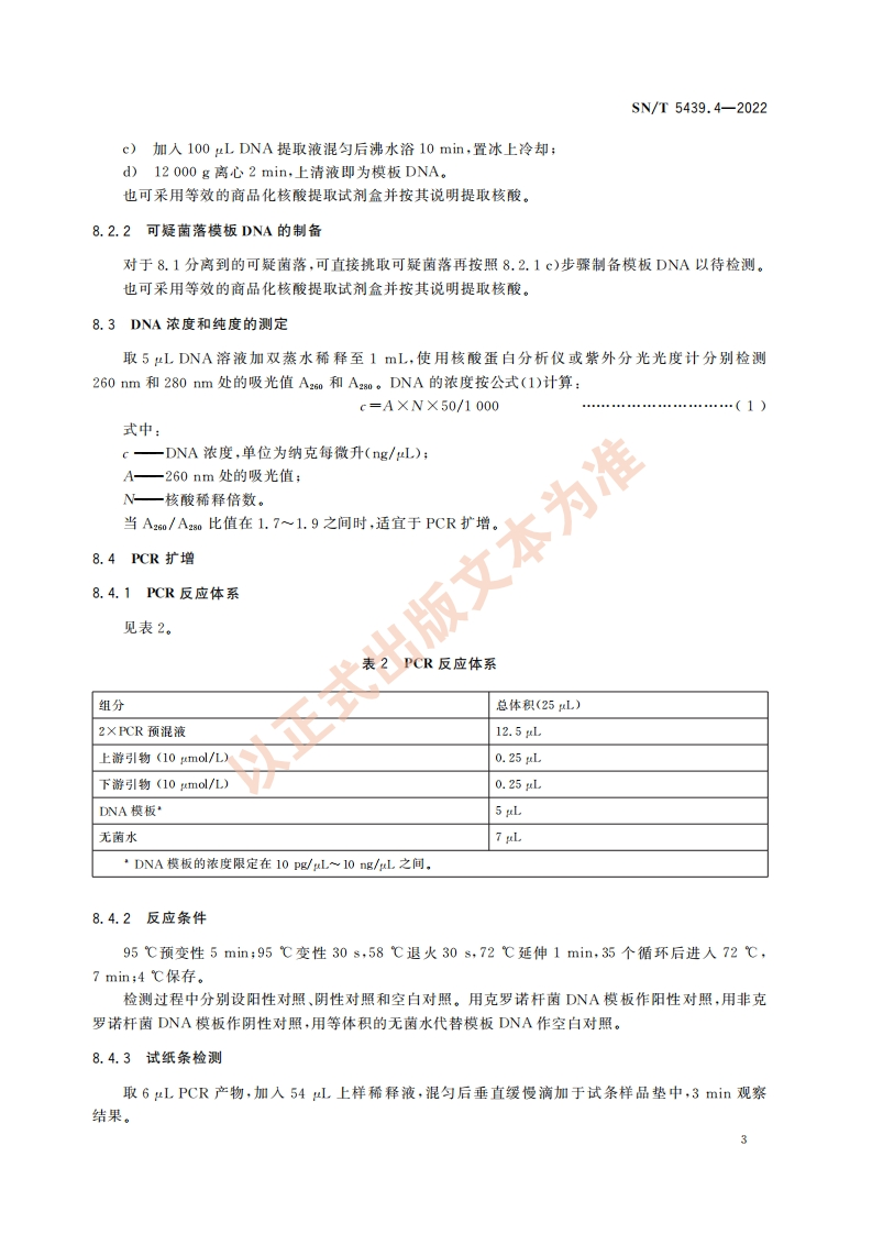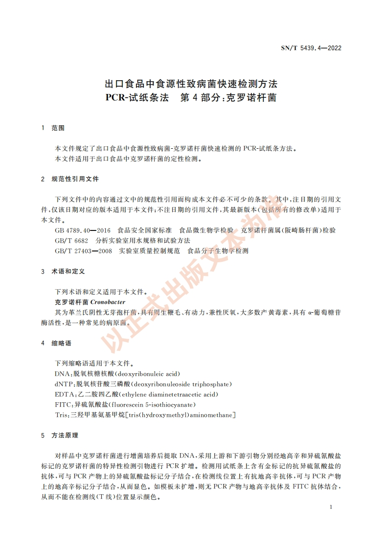 SN_T5439.4-2022出口食品中食源性致病菌快速检测标准方法PCR-试纸条法第4部分:克罗诺杆菌348072@abc1个月前发布关注私信0.70MB10页036SN_T5439.4-2022出口食品中食源性致病菌快速检测标准方法PCR-试纸条法第4部分:克罗诺杆菌此内容为付费资源,请付费后查看¥13¥19黄金会员免费钻石会员免费立即购买您当前未登录!建议登陆后购买,可保存购买订单付费资源 第1页 / 共10页 第2页 / 共10页 第3页 / 共10页 第4页 / 共10页 第5页 / 共10页 试读已结束,还剩5页,您可下载完整版后进行离线阅读 THE END播放器标准规范餐饮美食 喜欢就支持一下吧收藏