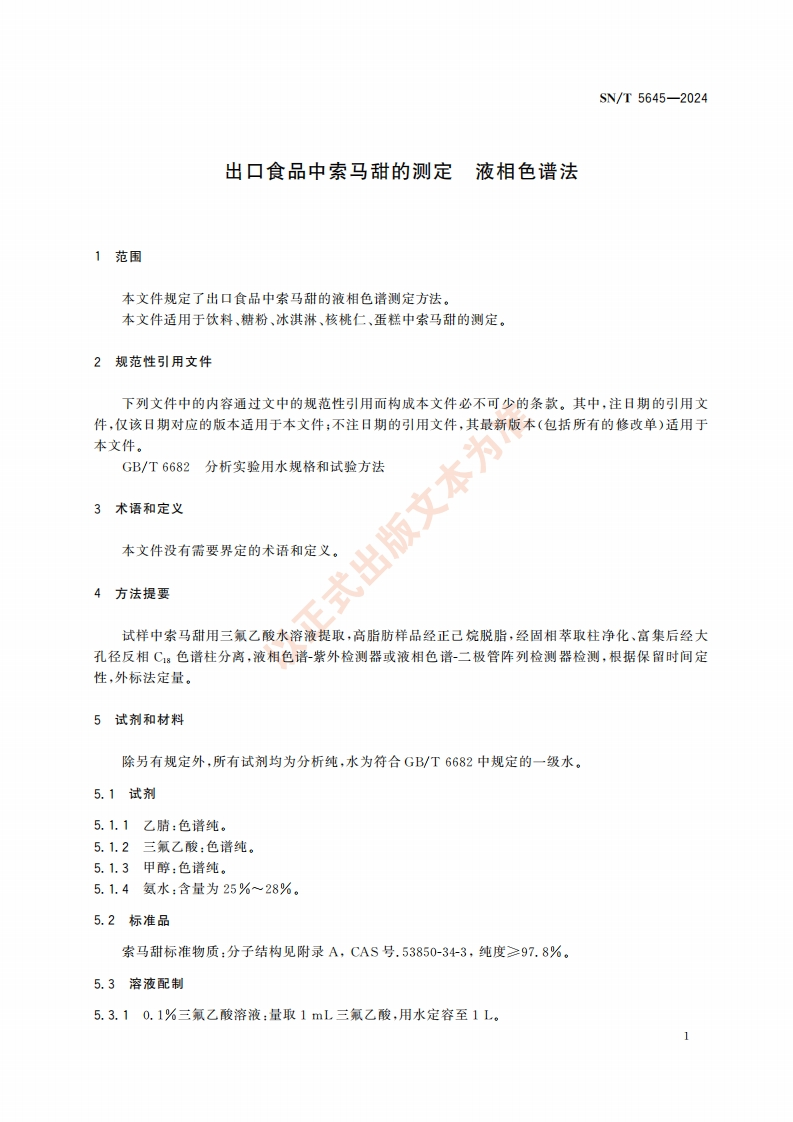 SN_T5645-2024出口食品中索马甜的标准测定液相色谱法348072@abc1个月前发布关注私信18.81MB12页049SN_T5645-2024出口食品中索马甜的标准测定液相色谱法此内容为付费资源,请付费后查看¥13¥19黄金会员免费钻石会员免费立即购买您当前未登录!建议登陆后购买,可保存购买订单付费资源 第1页 / 共12页 第2页 / 共12页 第3页 / 共12页 第4页 / 共12页 第5页 / 共12页 试读已结束,还剩7页,您可下载完整版后进行离线阅读 THE END播放器标准规范餐饮美食 喜欢就支持一下吧收藏