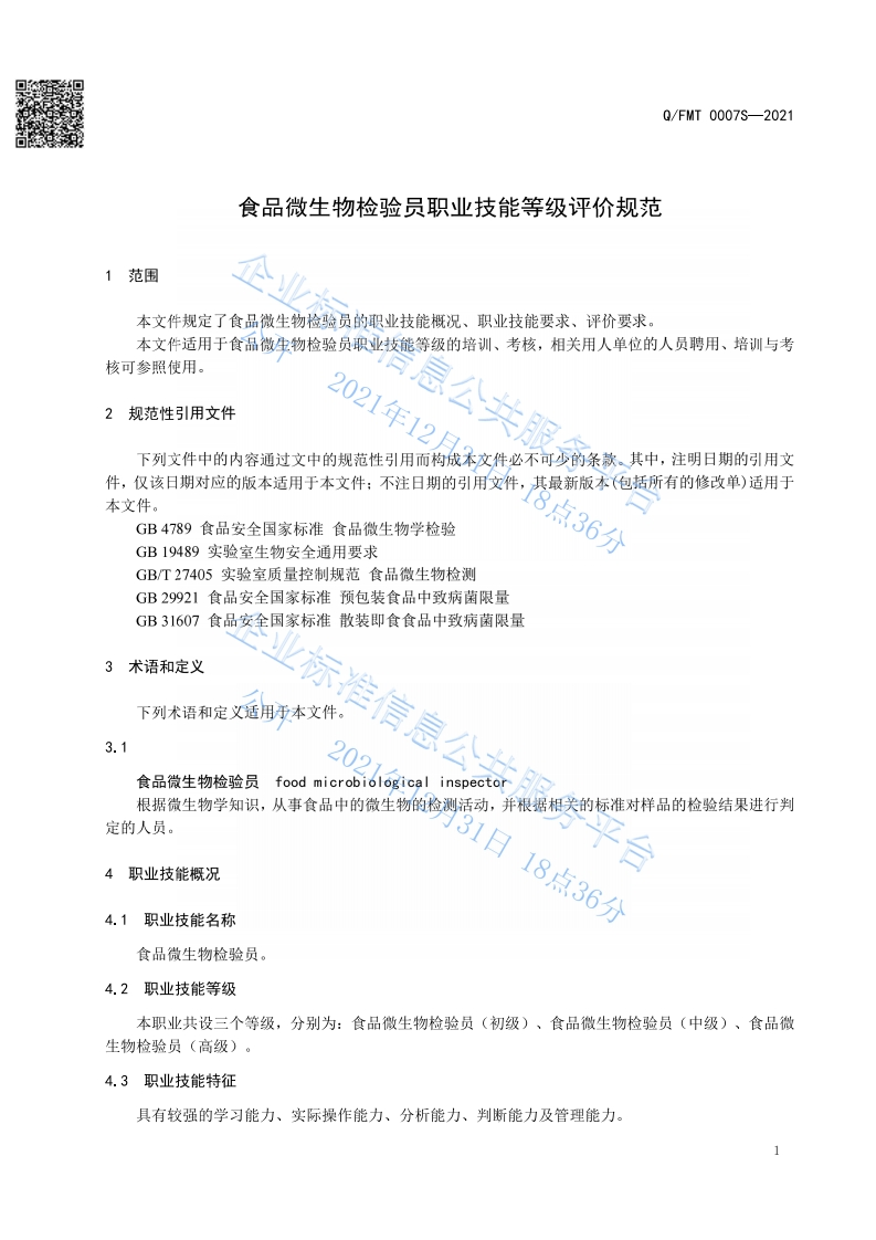 食品安全企业标准Q_FMT0007S-2021食品微生物检验员职业技能等级评价规范348072@abc14天前发布关注私信11.48MB13页025食品安全企业标准Q_FMT0007S-2021食品微生物检验员职业技能等级评价规范此内容为付费资源,请付费后查看¥13¥19黄金会员免费钻石会员免费立即购买您当前未登录!建议登陆后购买,可保存购买订单付费资源 第1页 / 共13页 第2页 / 共13页 第3页 / 共13页 第4页 / 共13页 第5页 / 共13页 试读已结束,还剩8页,您可下载完整版后进行离线阅读 THE END农学类标准规范餐饮美食 喜欢就支持一下吧收藏