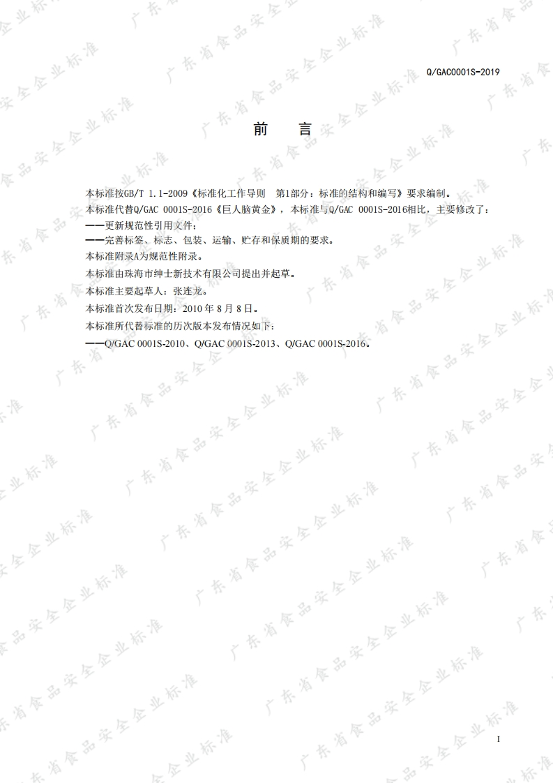 食品安全企业标准Q_GAC0001S-2019巨人脑黄金348072@abc44天前发布关注私信0.32MB9页031食品安全企业标准Q_GAC0001S-2019巨人脑黄金此内容为付费资源,请付费后查看¥13¥19黄金会员免费钻石会员免费立即购买您当前未登录!建议登陆后购买,可保存购买订单付费资源 第1页 / 共9页 第2页 / 共9页 第3页 / 共9页 第4页 / 共9页 第5页 / 共9页 试读已结束,还剩4页,您可下载完整版后进行离线阅读 THE END农学类标准规范餐饮美食 喜欢就支持一下吧收藏