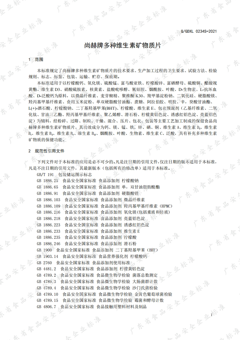 食品安全企业标准Q_GDXL0234S-2021尚赫牌多种维生素矿物质片348072@abc1个月前发布关注私信0.54MB33页049食品安全企业标准Q_GDXL0234S-2021尚赫牌多种维生素矿物质片此内容为付费资源,请付费后查看¥13¥19黄金会员免费钻石会员免费立即购买您当前未登录!建议登陆后购买,可保存购买订单付费资源 第1页 / 共33页 第2页 / 共33页 第3页 / 共33页 第4页 / 共33页 第5页 / 共33页 试读已结束,还剩28页,您可下载完整版后进行离线阅读 THE END农学类标准规范餐饮美食 喜欢就支持一下吧收藏
