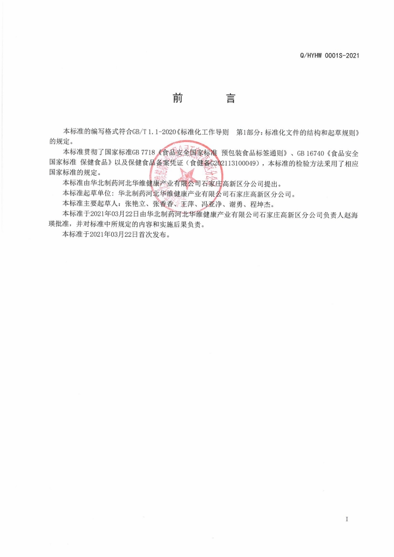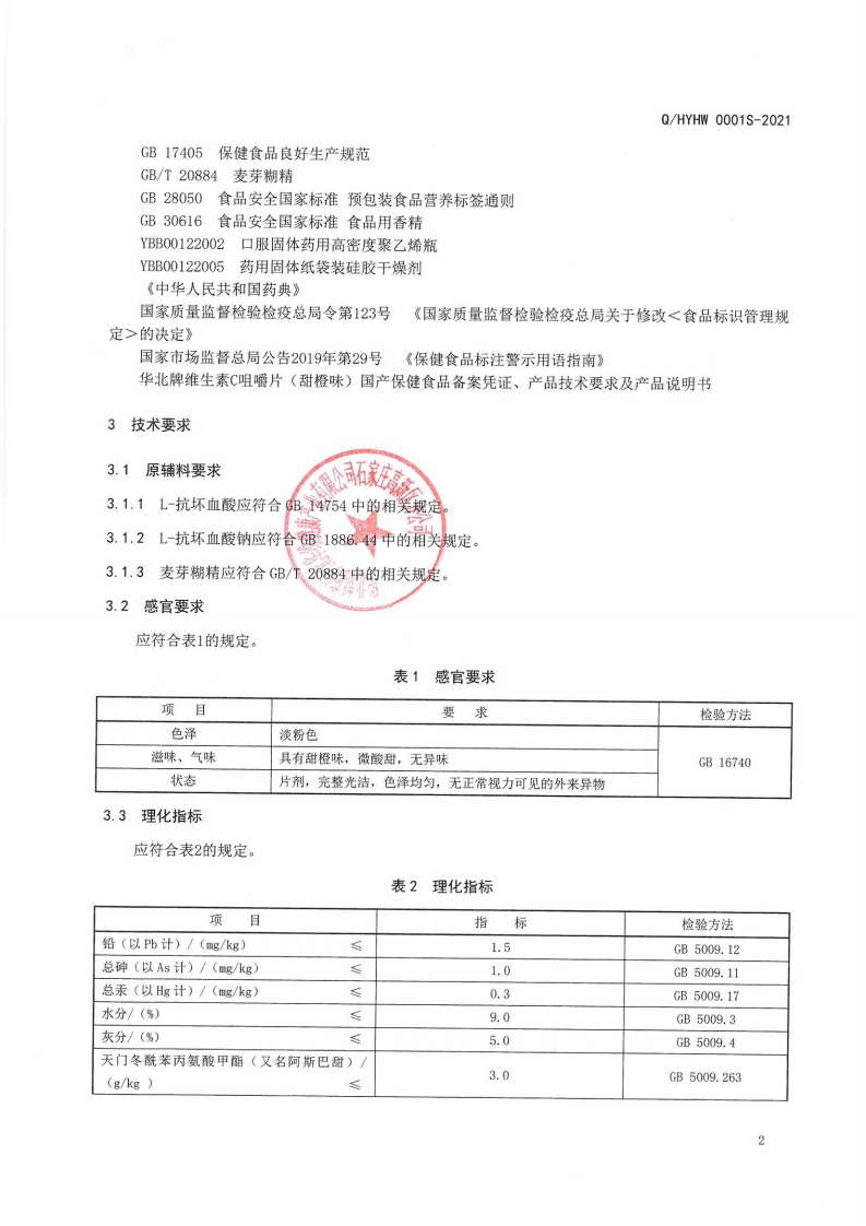 食品安全企业标准Q_HYHW0001S-2021华北牌维生素C咀嚼片(甜橙味)348072@abc1个月前发布关注私信2MB7页045食品安全企业标准Q_HYHW0001S-2021华北牌维生素C咀嚼片(甜橙味)此内容为付费资源,请付费后查看¥11¥19黄金会员免费钻石会员免费立即购买您当前未登录!建议登陆后购买,可保存购买订单付费资源 第1页 / 共7页 第2页 / 共7页 第3页 / 共7页 第4页 / 共7页 第5页 / 共7页 试读已结束,还剩2页,您可下载完整版后进行离线阅读 THE END农学类标准规范餐饮美食 喜欢就支持一下吧收藏