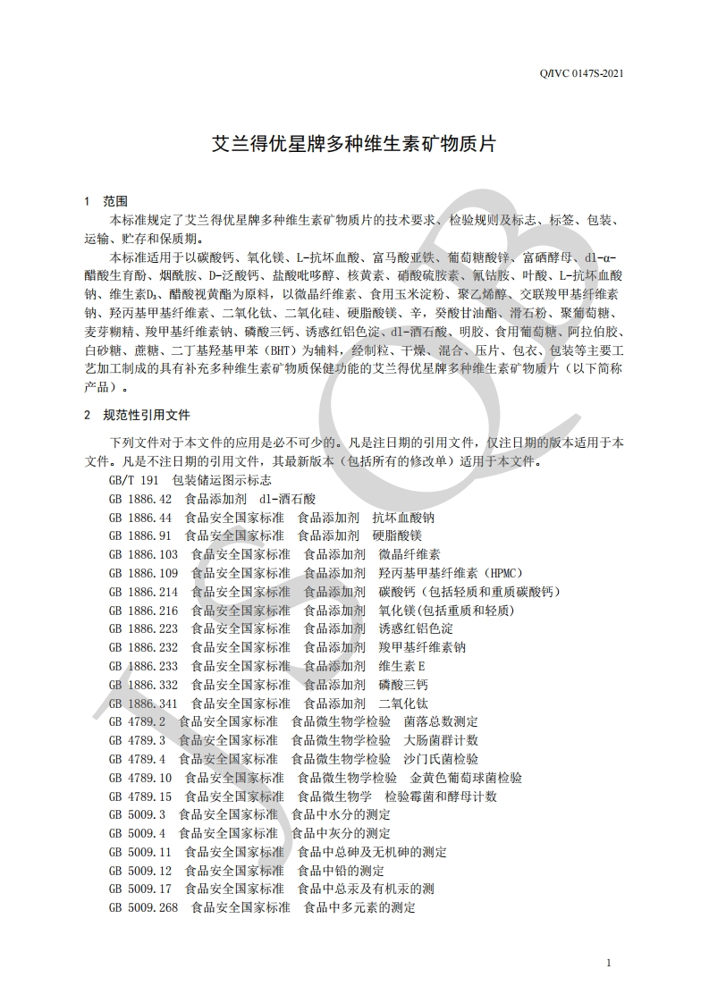 食品安全企业标准Q_IVC0147S-2021艾兰得优星牌多种维生素矿物质片348072@abc1个月前发布关注私信0.42MB16页025食品安全企业标准Q_IVC0147S-2021艾兰得优星牌多种维生素矿物质片此内容为付费资源,请付费后查看¥11¥19黄金会员免费钻石会员免费立即购买您当前未登录!建议登陆后购买,可保存购买订单付费资源 第1页 / 共16页 第2页 / 共16页 第3页 / 共16页 第4页 / 共16页 第5页 / 共16页 试读已结束,还剩11页,您可下载完整版后进行离线阅读 THE END农学类标准规范餐饮美食 喜欢就支持一下吧收藏
