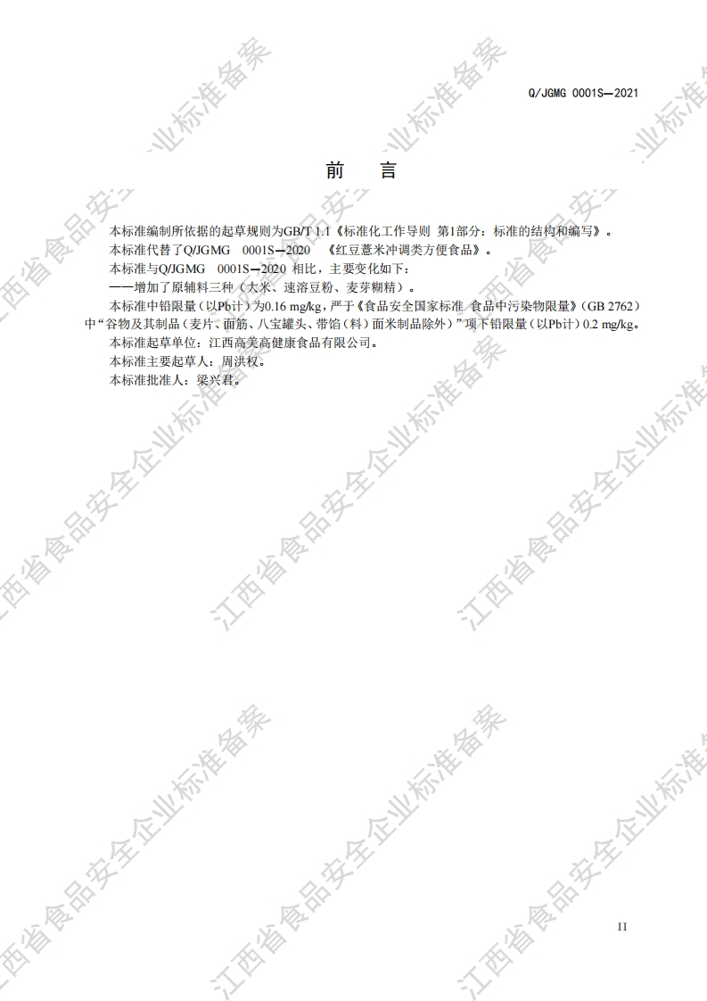 食品安全企业标准Q_JGMG0001S-2021红豆薏米冲调类方便食品348072@abc1个月前发布关注私信0.49MB12页027食品安全企业标准Q_JGMG0001S-2021红豆薏米冲调类方便食品此内容为付费资源,请付费后查看¥13¥19黄金会员免费钻石会员免费立即购买您当前未登录!建议登陆后购买,可保存购买订单付费资源 第1页 / 共12页 第2页 / 共12页 第3页 / 共12页 第4页 / 共12页 第5页 / 共12页 试读已结束,还剩7页,您可下载完整版后进行离线阅读 THE END农学类标准规范餐饮美食 喜欢就支持一下吧收藏
