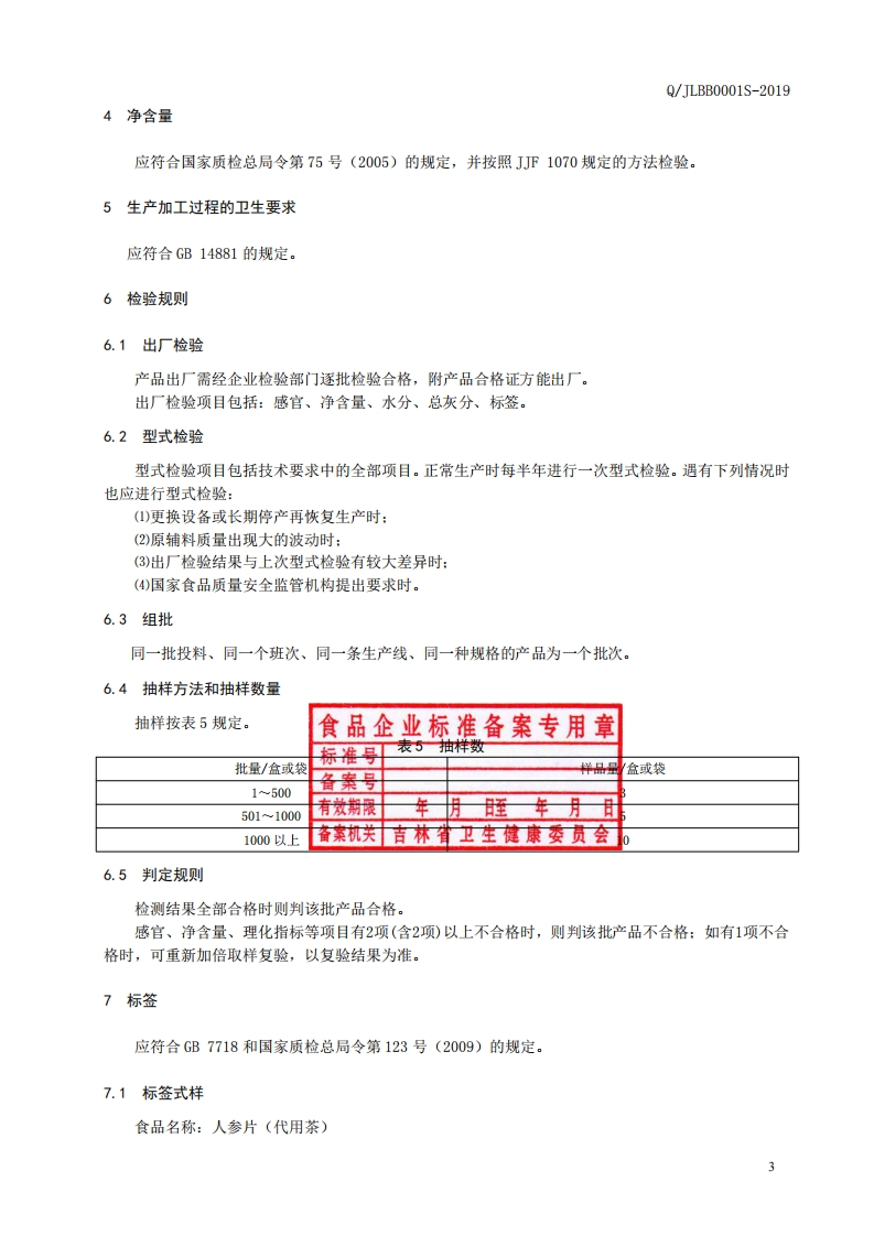 食品安全企业标准Q_JLBB0001S-2019人参片(代用茶)348072@abc1个月前发布关注私信0.20MB5页041食品安全企业标准Q_JLBB0001S-2019人参片(代用茶)此内容为付费资源,请付费后查看¥13¥19黄金会员免费钻石会员免费立即购买您当前未登录!建议登陆后购买,可保存购买订单付费资源 第1页 / 共5页 第2页 / 共5页 第3页 / 共5页 第4页 / 共5页 第5页 / 共5页 已完成全部阅读,共5页 THE END播放器标准规范餐饮美食 喜欢就支持一下吧收藏