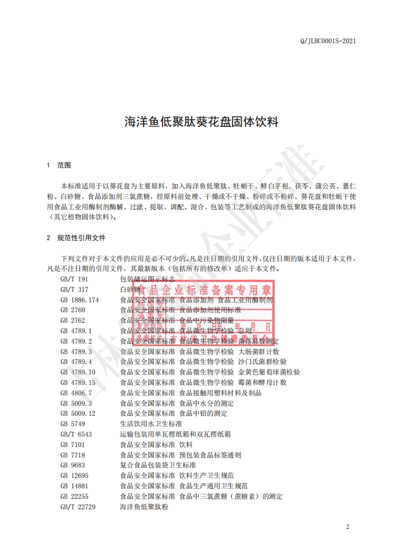 食品安全企业标准Q_JLBC0001S-2021海洋鱼低聚肽葵花盘固体饮料348072@abc1个月前发布关注私信0.78MB7页036食品安全企业标准Q_JLBC0001S-2021海洋鱼低聚肽葵花盘固体饮料此内容为付费资源,请付费后查看¥13¥19黄金会员免费钻石会员免费立即购买您当前未登录!建议登陆后购买,可保存购买订单付费资源 第1页 / 共7页 第2页 / 共7页 第3页 / 共7页 第4页 / 共7页 第5页 / 共7页 试读已结束,还剩2页,您可下载完整版后进行离线阅读 THE END播放器标准规范餐饮美食 喜欢就支持一下吧收藏