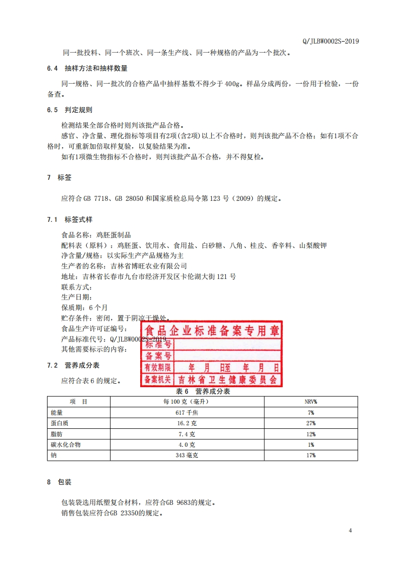 食品安全企业标准Q_JLBW0002S-2019鸡胚蛋制品348072@abc1个月前发布关注私信0.23MB6页021食品安全企业标准Q_JLBW0002S-2019鸡胚蛋制品此内容为付费资源,请付费后查看¥13¥19黄金会员免费钻石会员免费立即购买您当前未登录!建议登陆后购买,可保存购买订单付费资源 第1页 / 共6页 第2页 / 共6页 第3页 / 共6页 第4页 / 共6页 第5页 / 共6页 试读已结束,还剩1页,您可下载完整版后进行离线阅读 THE END播放器标准规范餐饮美食 喜欢就支持一下吧收藏