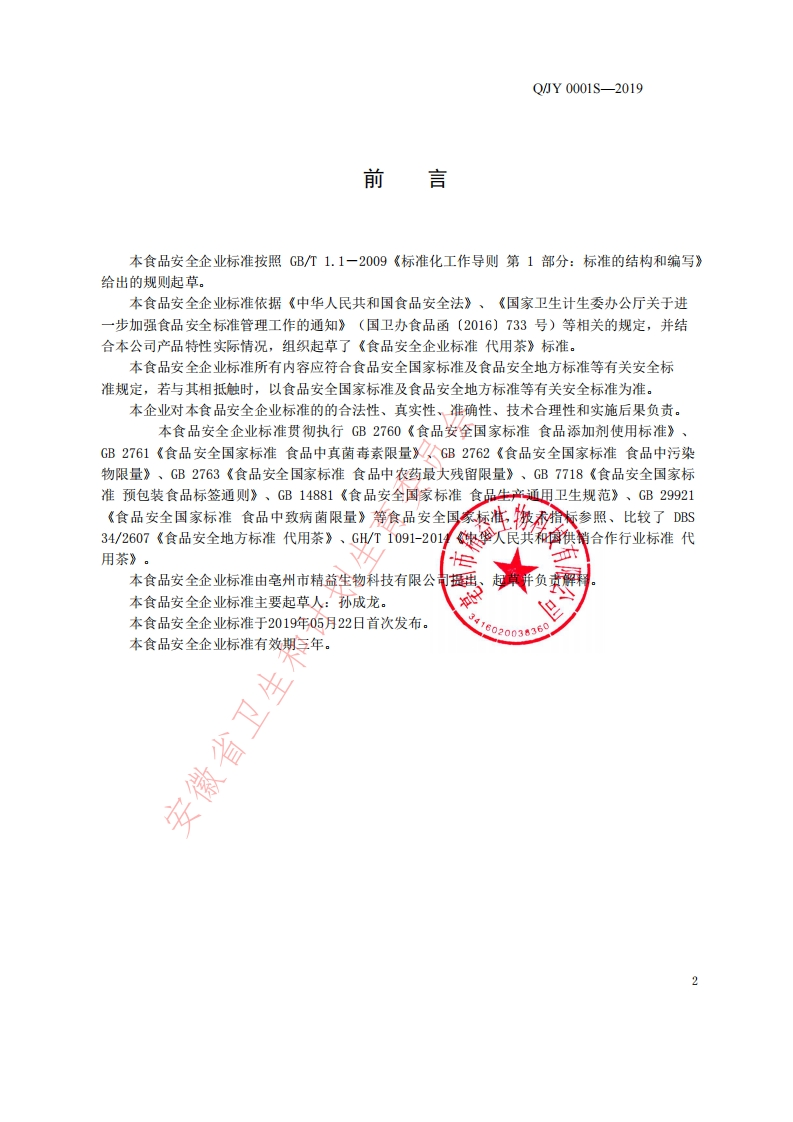 食品安全企业标准Q_JY0001S-2019代用茶348072@abc1个月前发布关注私信0.39MB10页050食品安全企业标准Q_JY0001S-2019代用茶此内容为付费资源,请付费后查看¥13¥19黄金会员免费钻石会员免费立即购买您当前未登录!建议登陆后购买,可保存购买订单付费资源 第1页 / 共10页 第2页 / 共10页 第3页 / 共10页 第4页 / 共10页 第5页 / 共10页 试读已结束,还剩5页,您可下载完整版后进行离线阅读 THE END播放器标准规范餐饮美食 喜欢就支持一下吧收藏