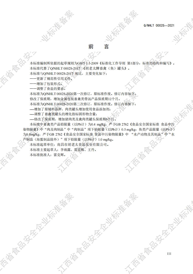 食品安全企业标准Q_NHLT0002S-2021胡老太牌畜禽(鱼)罐头348072@abc1个月前发布关注私信0.46MB11页020食品安全企业标准Q_NHLT0002S-2021胡老太牌畜禽(鱼)罐头此内容为付费资源,请付费后查看¥13¥19黄金会员免费钻石会员免费立即购买您当前未登录!建议登陆后购买,可保存购买订单付费资源 第1页 / 共11页 第2页 / 共11页 第3页 / 共11页 第4页 / 共11页 第5页 / 共11页 试读已结束,还剩6页,您可下载完整版后进行离线阅读 THE END农学类标准规范餐饮美食 喜欢就支持一下吧收藏