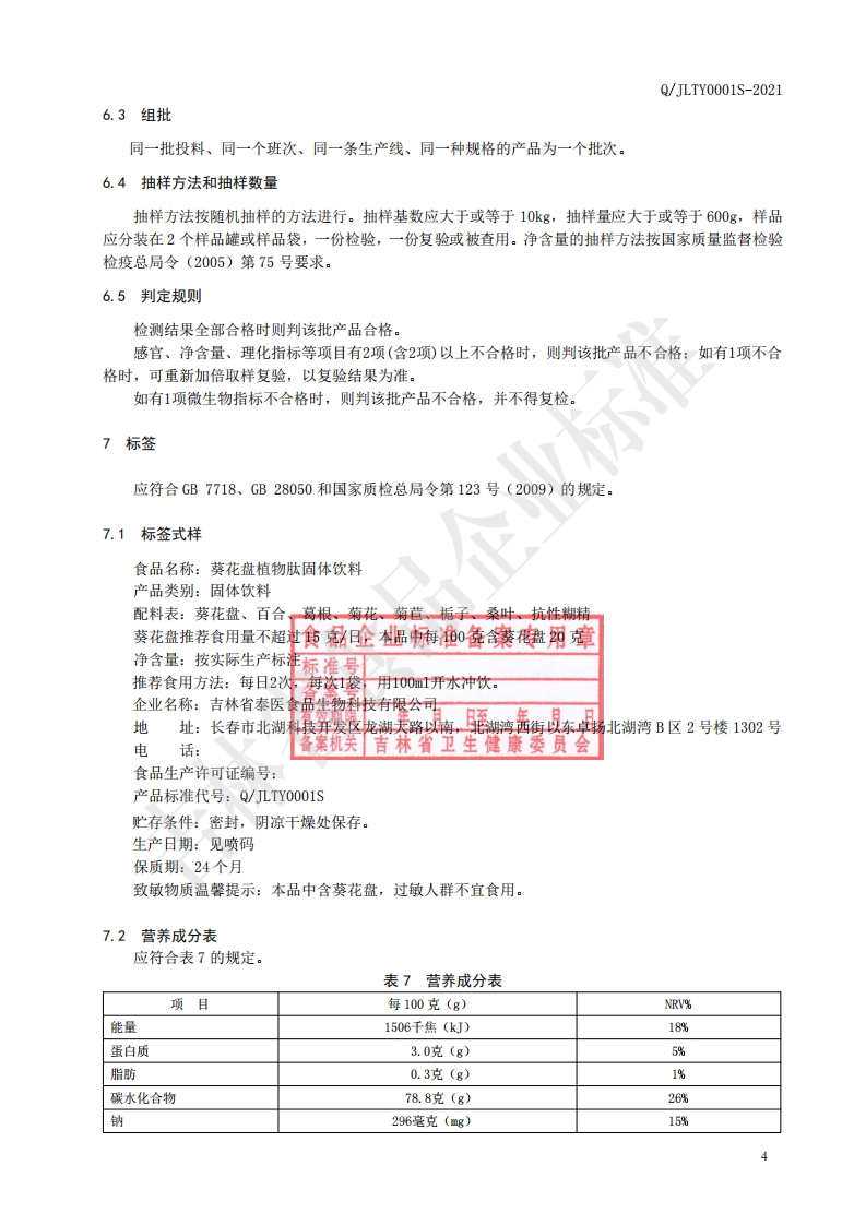 食品安全企业标准Q_JLTY0001S-2021葵花盘植物肽固体饮料348072@abc1个月前发布关注私信0.77MB6页020食品安全企业标准Q_JLTY0001S-2021葵花盘植物肽固体饮料此内容为付费资源,请付费后查看¥19¥31黄金会员免费钻石会员免费立即购买您当前未登录!建议登陆后购买,可保存购买订单付费资源 第1页 / 共6页 第2页 / 共6页 第3页 / 共6页 第4页 / 共6页 第5页 / 共6页 试读已结束,还剩1页,您可下载完整版后进行离线阅读 THE END播放器标准规范餐饮美食 喜欢就支持一下吧收藏