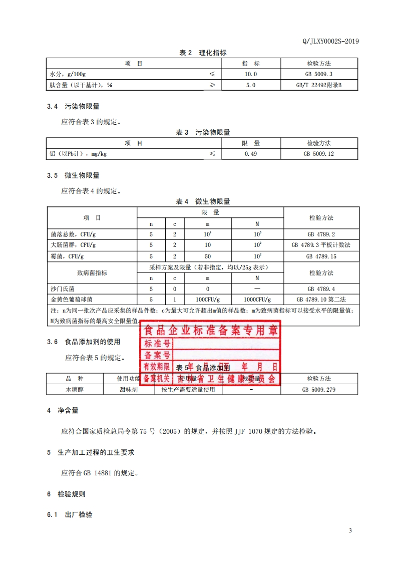 食品安全企业标准Q_JLXY0002S-2019大豆肽玉米紫苏粉(方便食品)348072@abc18天前发布关注私信0.23MB6页026食品安全企业标准Q_JLXY0002S-2019大豆肽玉米紫苏粉(方便食品)此内容为付费资源,请付费后查看¥19¥31黄金会员免费钻石会员免费立即购买您当前未登录!建议登陆后购买,可保存购买订单付费资源 第1页 / 共6页 第2页 / 共6页 第3页 / 共6页 第4页 / 共6页 第5页 / 共6页 试读已结束,还剩1页,您可下载完整版后进行离线阅读 THE END农学类标准规范餐饮美食 喜欢就支持一下吧收藏