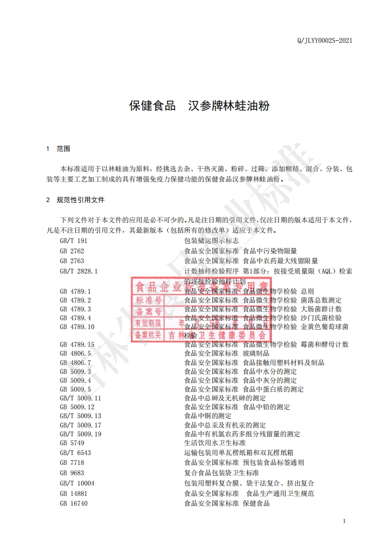 食品安全企业标准Q_JLYY0002S-2021保健食品汉参牌林蛙油粉348072@abc1个月前发布关注私信0.83MB8页046食品安全企业标准Q_JLYY0002S-2021保健食品汉参牌林蛙油粉此内容为付费资源,请付费后查看¥19¥31黄金会员免费钻石会员免费立即购买您当前未登录!建议登陆后购买,可保存购买订单付费资源 第1页 / 共8页 第2页 / 共8页 第3页 / 共8页 第4页 / 共8页 第5页 / 共8页 试读已结束,还剩3页,您可下载完整版后进行离线阅读 THE END农学类标准规范餐饮美食 喜欢就支持一下吧收藏