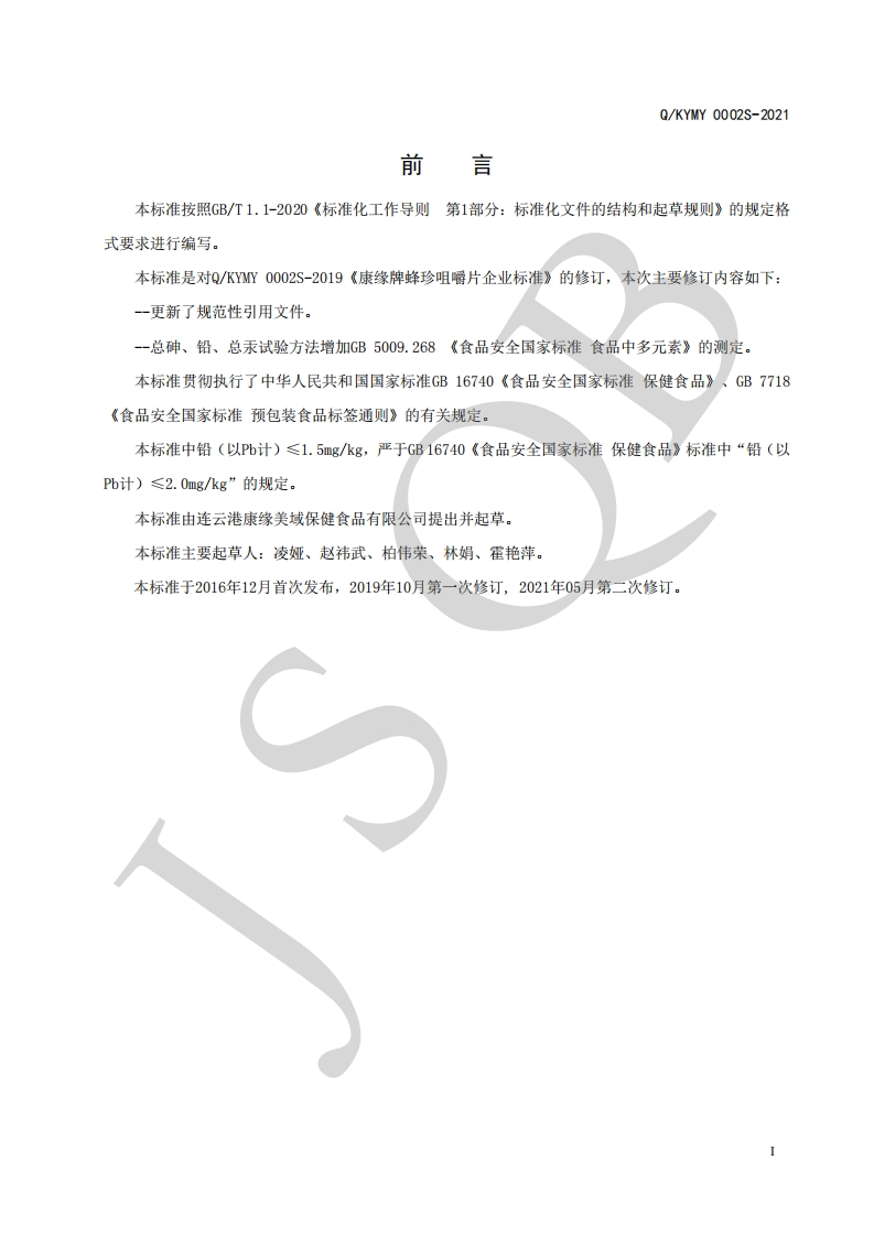食品安全企业标准Q_KYMY0002S-2021康缘牌蜂珍咀嚼片348072@abc17天前发布关注私信0.27MB8页044食品安全企业标准Q_KYMY0002S-2021康缘牌蜂珍咀嚼片此内容为付费资源,请付费后查看¥19¥23黄金会员免费钻石会员免费立即购买您当前未登录!建议登陆后购买,可保存购买订单付费资源 第1页 / 共8页 第2页 / 共8页 第3页 / 共8页 第4页 / 共8页 第5页 / 共8页 试读已结束,还剩3页,您可下载完整版后进行离线阅读 THE END农学类标准规范餐饮美食 喜欢就支持一下吧收藏