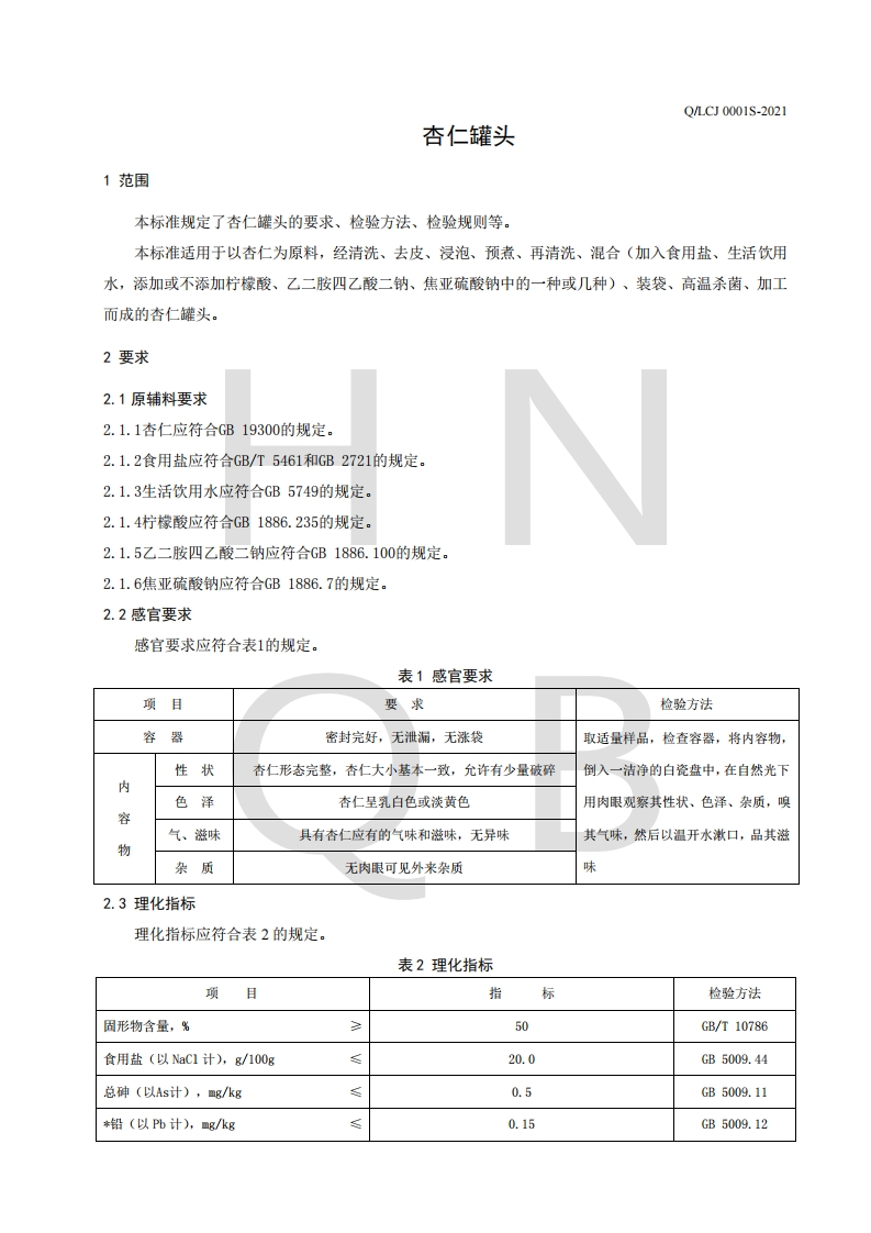 食品安全企业标准Q_LCJ0001S-2021杏仁罐头348072@abc1个月前发布关注私信0.18MB5页020食品安全企业标准Q_LCJ0001S-2021杏仁罐头此内容为付费资源,请付费后查看¥19¥23黄金会员免费钻石会员免费立即购买您当前未登录!建议登陆后购买,可保存购买订单付费资源 第1页 / 共5页 第2页 / 共5页 第3页 / 共5页 第4页 / 共5页 第5页 / 共5页 已完成全部阅读,共5页 THE END播放器标准规范餐饮美食 喜欢就支持一下吧收藏