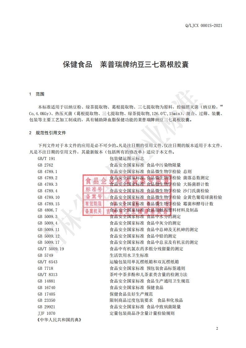 食品安全企业标准Q_LJCX0001S-2021保健食品莱普瑞牌纳豆三七葛根胶囊348072@abc1个月前发布关注私信0.87MB10页025食品安全企业标准Q_LJCX0001S-2021保健食品莱普瑞牌纳豆三七葛根胶囊此内容为付费资源,请付费后查看¥19¥23黄金会员免费钻石会员免费立即购买您当前未登录!建议登陆后购买,可保存购买订单付费资源 第1页 / 共10页 第2页 / 共10页 第3页 / 共10页 第4页 / 共10页 第5页 / 共10页 试读已结束,还剩5页,您可下载完整版后进行离线阅读 THE END农学类标准规范餐饮美食 喜欢就支持一下吧收藏