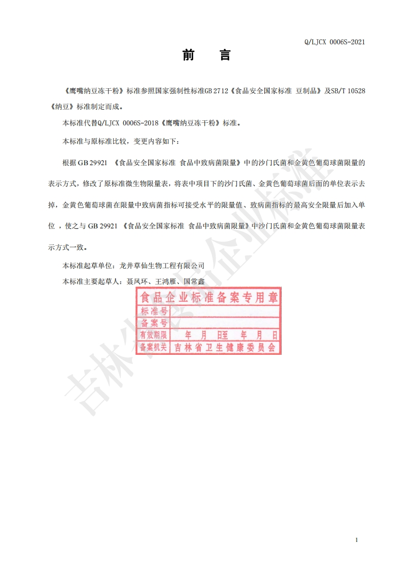 食品安全企业标准Q_LJCX0006S-2021鹰嘴纳豆冻干粉348072@abc3个月前发布关注私信0.75MB6页046食品安全企业标准Q_LJCX0006S-2021鹰嘴纳豆冻干粉此内容为付费资源,请付费后查看¥19¥23黄金会员免费钻石会员免费立即购买您当前未登录!建议登陆后购买,可保存购买订单付费资源 第1页 / 共6页 第2页 / 共6页 第3页 / 共6页 第4页 / 共6页 第5页 / 共6页 试读已结束,还剩1页,您可下载完整版后进行离线阅读 THE END播放器标准规范餐饮美食 喜欢就支持一下吧收藏