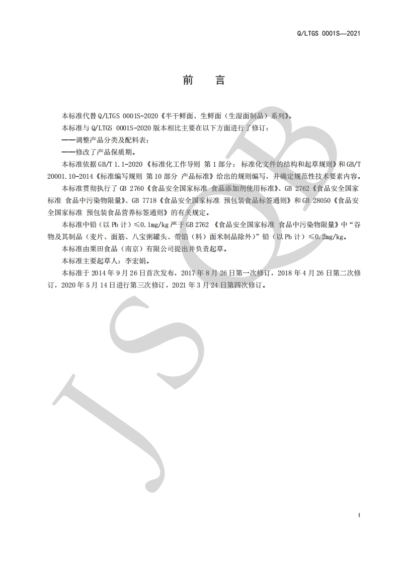 食品安全企业标准Q_LTGS0001S-2021半干鲜面、生鲜面(生湿面制品)系列348072@abc1个月前发布关注私信0.57MB27页041食品安全企业标准Q_LTGS0001S-2021半干鲜面、生鲜面(生湿面制品)系列此内容为付费资源,请付费后查看¥19¥23黄金会员免费钻石会员免费立即购买您当前未登录!建议登陆后购买,可保存购买订单付费资源 第1页 / 共27页 第2页 / 共27页 第3页 / 共27页 第4页 / 共27页 第5页 / 共27页 试读已结束,还剩22页,您可下载完整版后进行离线阅读 THE END播放器标准规范餐饮美食 喜欢就支持一下吧收藏
