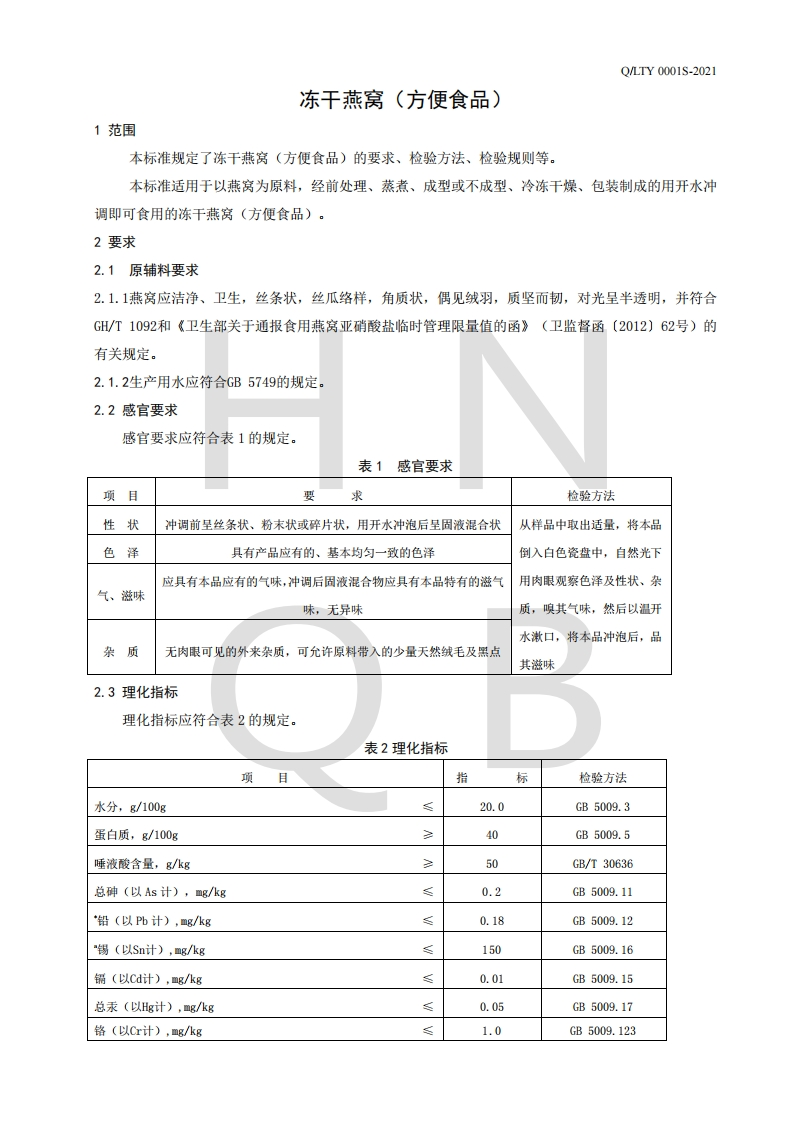 食品安全企业标准Q_LTY0001S-2021冻干燕窝(方便食品)348072@abc1个月前发布关注私信0.20MB5页041食品安全企业标准Q_LTY0001S-2021冻干燕窝(方便食品)此内容为付费资源,请付费后查看¥19¥23黄金会员免费钻石会员免费立即购买您当前未登录!建议登陆后购买,可保存购买订单付费资源 第1页 / 共5页 第2页 / 共5页 第3页 / 共5页 第4页 / 共5页 第5页 / 共5页 已完成全部阅读,共5页 THE END播放器标准规范餐饮美食 喜欢就支持一下吧收藏