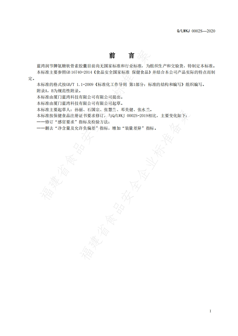 食品安全企业标准Q_LWKJ0002S-2020蓝湾润节牌氨糖软骨素胶囊348072@abc1个月前发布关注私信0.61MB14页030食品安全企业标准Q_LWKJ0002S-2020蓝湾润节牌氨糖软骨素胶囊此内容为付费资源,请付费后查看¥19¥23黄金会员免费钻石会员免费立即购买您当前未登录!建议登陆后购买,可保存购买订单付费资源 第1页 / 共14页 第2页 / 共14页 第3页 / 共14页 第4页 / 共14页 第5页 / 共14页 试读已结束,还剩9页,您可下载完整版后进行离线阅读 THE END播放器标准规范餐饮美食 喜欢就支持一下吧收藏