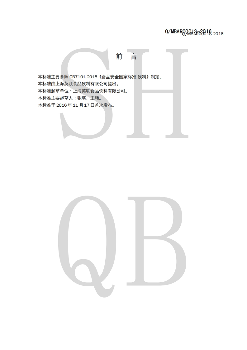 食品安全企业标准Q_MBAR0001S-2016营养麦芽蛋白固体饮料(阿华田营养多合一)348072@abc1个月前发布关注私信0.21MB5页044食品安全企业标准Q_MBAR0001S-2016营养麦芽蛋白固体饮料(阿华田营养多合一)此内容为付费资源,请付费后查看¥19¥23黄金会员免费钻石会员免费立即购买您当前未登录!建议登陆后购买,可保存购买订单付费资源 第1页 / 共5页 第2页 / 共5页 第3页 / 共5页 第4页 / 共5页 第5页 / 共5页 已完成全部阅读,共5页 THE END播放器标准规范餐饮美食 喜欢就支持一下吧收藏