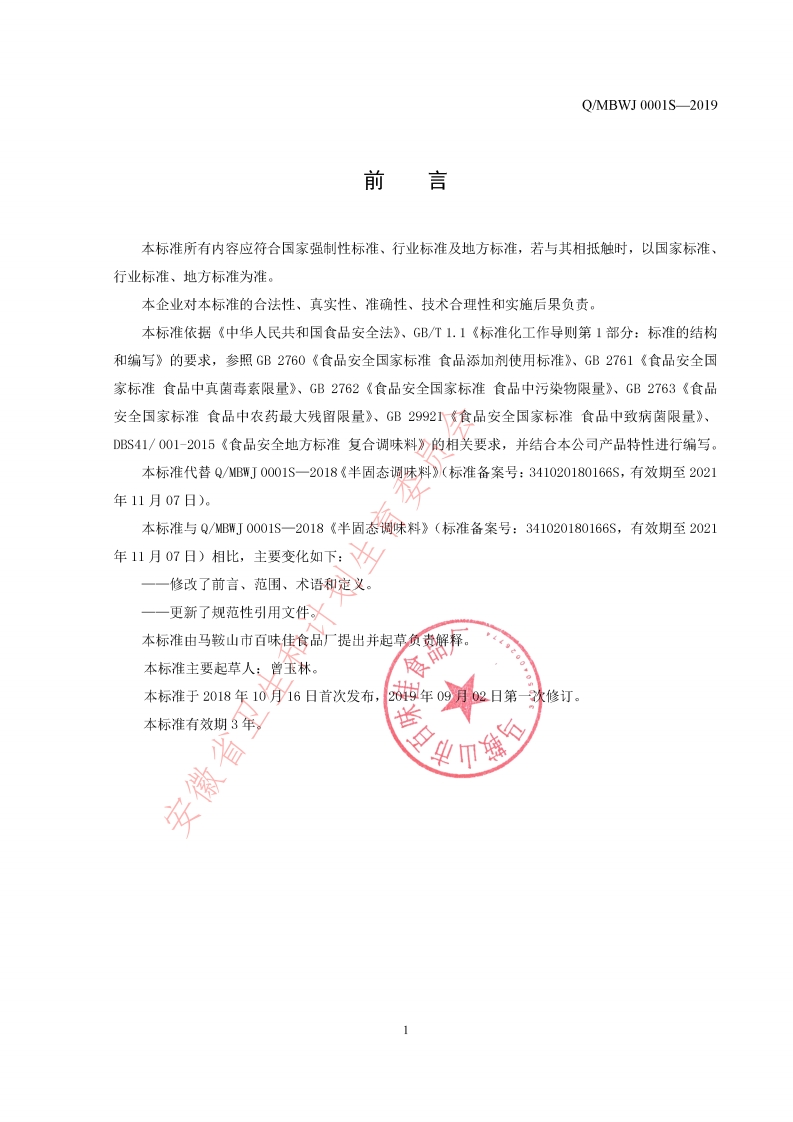食品安全企业标准Q_MBWJ0001S-2019半固态调味料348072@abc1个月前发布关注私信1.31MB9页027食品安全企业标准Q_MBWJ0001S-2019半固态调味料此内容为付费资源,请付费后查看¥19¥23黄金会员免费钻石会员免费立即购买您当前未登录!建议登陆后购买,可保存购买订单付费资源 第1页 / 共9页 第2页 / 共9页 第3页 / 共9页 第4页 / 共9页 第5页 / 共9页 试读已结束,还剩4页,您可下载完整版后进行离线阅读 THE END播放器标准规范餐饮美食 喜欢就支持一下吧收藏