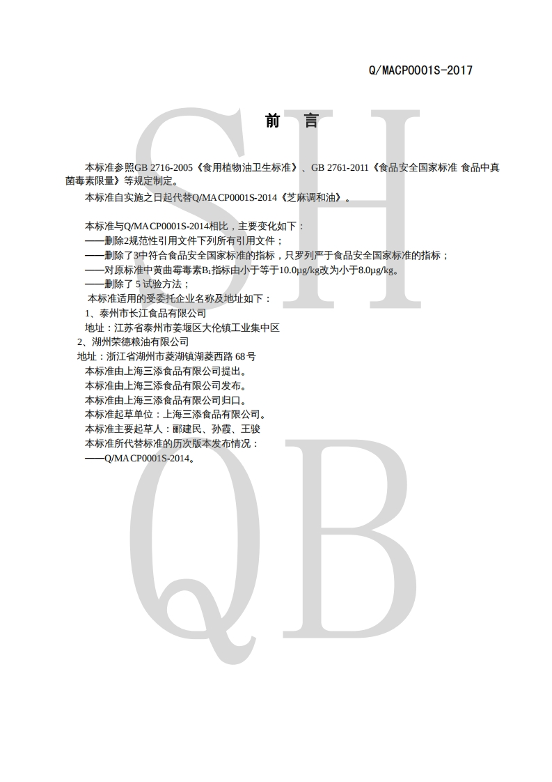食品安全企业标准Q_MHS0004S-2019芝麻调和油(食用植物调和油)348072@abc1个月前发布关注私信0.20MB5页050食品安全企业标准Q_MHS0004S-2019芝麻调和油(食用植物调和油)此内容为付费资源,请付费后查看¥19¥23黄金会员免费钻石会员免费立即购买您当前未登录!建议登陆后购买,可保存购买订单付费资源 第1页 / 共5页 第2页 / 共5页 第3页 / 共5页 第4页 / 共5页 第5页 / 共5页 已完成全部阅读,共5页 THE END播放器标准规范餐饮美食 喜欢就支持一下吧收藏