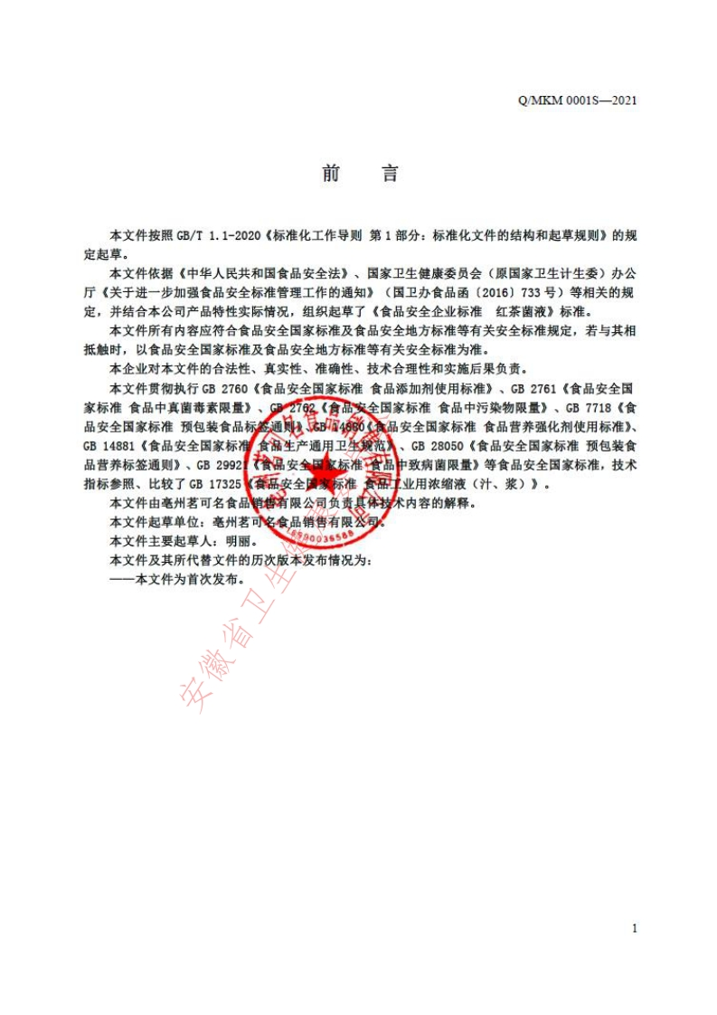 食品安全企业标准Q_MKM0001S-2021红茶菌液348072@abc1个月前发布关注私信0.79MB7页020食品安全企业标准Q_MKM0001S-2021红茶菌液此内容为付费资源,请付费后查看¥19¥23黄金会员免费钻石会员免费立即购买您当前未登录!建议登陆后购买,可保存购买订单付费资源 第1页 / 共7页 第2页 / 共7页 第3页 / 共7页 第4页 / 共7页 第5页 / 共7页 试读已结束,还剩2页,您可下载完整版后进行离线阅读 THE END播放器标准规范餐饮美食 喜欢就支持一下吧收藏