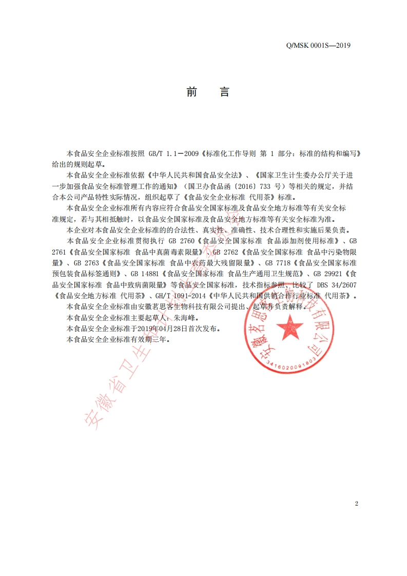 食品安全企业标准Q_MSK0001S-2019代用茶348072@abc1个月前发布关注私信0.39MB10页038食品安全企业标准Q_MSK0001S-2019代用茶此内容为付费资源,请付费后查看¥19¥23黄金会员免费钻石会员免费立即购买您当前未登录!建议登陆后购买,可保存购买订单付费资源 第1页 / 共10页 第2页 / 共10页 第3页 / 共10页 第4页 / 共10页 第5页 / 共10页 试读已结束,还剩5页,您可下载完整版后进行离线阅读 THE END播放器标准规范餐饮美食 喜欢就支持一下吧收藏