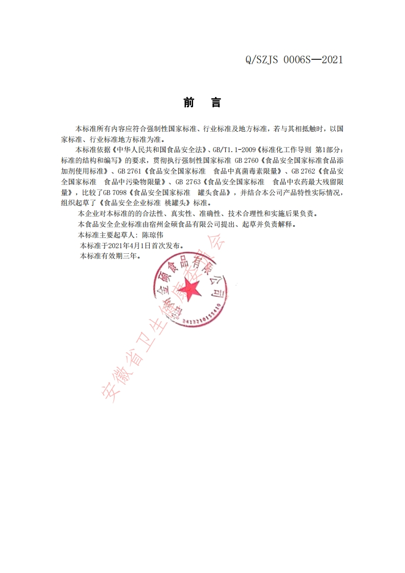 食品安全企业标准Q_SZJS0006S-2021桃罐头348072@abc1个月前发布关注私信0.34MB6页028食品安全企业标准Q_SZJS0006S-2021桃罐头此内容为付费资源,请付费后查看¥19¥23黄金会员免费钻石会员免费立即购买您当前未登录!建议登陆后购买,可保存购买订单付费资源 第1页 / 共6页 第2页 / 共6页 第3页 / 共6页 第4页 / 共6页 第5页 / 共6页 试读已结束,还剩1页,您可下载完整版后进行离线阅读 THE END播放器标准规范餐饮美食 喜欢就支持一下吧收藏