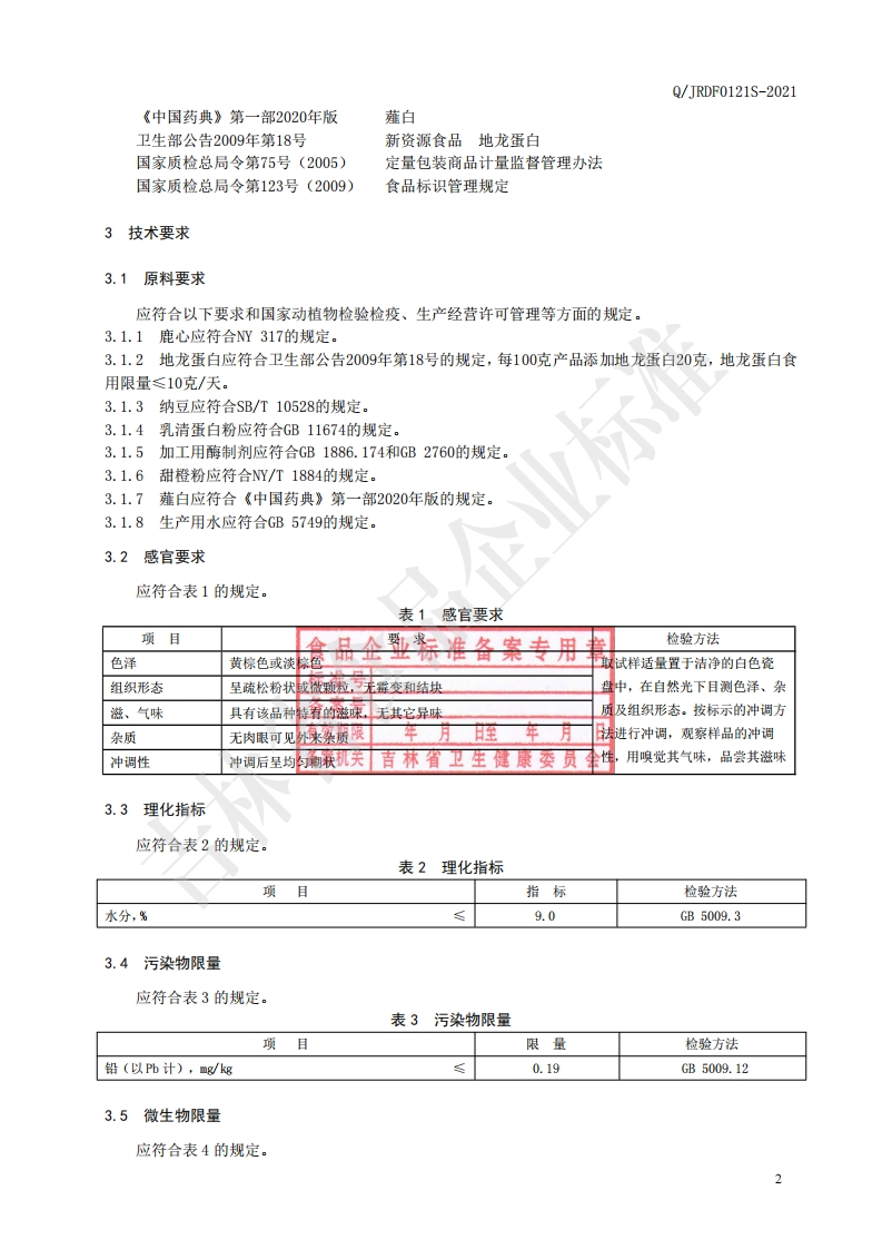 食品安全企业标准Q_JRDF0121S-2021鹿心地龙蛋白多肽即食冲调粉348072@abc1个月前发布关注私信0.77MB6页049食品安全企业标准Q_JRDF0121S-2021鹿心地龙蛋白多肽即食冲调粉此内容为付费资源,请付费后查看¥19¥23黄金会员免费钻石会员免费立即购买您当前未登录!建议登陆后购买,可保存购买订单付费资源 第1页 / 共6页 第2页 / 共6页 第3页 / 共6页 第4页 / 共6页 第5页 / 共6页 试读已结束,还剩1页,您可下载完整版后进行离线阅读 THE END播放器标准规范餐饮美食 喜欢就支持一下吧收藏