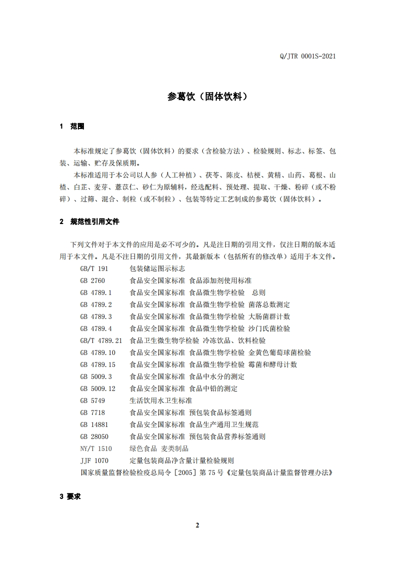 食品安全企业标准Q_JRT0001S-2021参葛饮(固体饮料)348072@abc1个月前发布关注私信0.15MB6页049食品安全企业标准Q_JRT0001S-2021参葛饮(固体饮料)此内容为付费资源,请付费后查看¥19¥23黄金会员免费钻石会员免费立即购买您当前未登录!建议登陆后购买,可保存购买订单付费资源 第1页 / 共6页 第2页 / 共6页 第3页 / 共6页 第4页 / 共6页 第5页 / 共6页 试读已结束,还剩1页,您可下载完整版后进行离线阅读 THE END农学类标准规范餐饮美食 喜欢就支持一下吧收藏