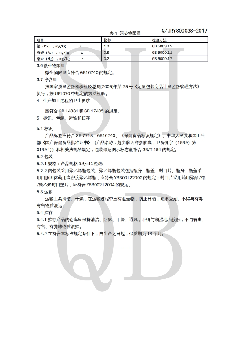 食品安全企业标准Q_JRYS0003S-2017超力牌西洋参胶囊348072@abc1个月前发布关注私信0.27MB5页039食品安全企业标准Q_JRYS0003S-2017超力牌西洋参胶囊此内容为付费资源,请付费后查看¥19¥23黄金会员免费钻石会员免费立即购买您当前未登录!建议登陆后购买,可保存购买订单付费资源 第1页 / 共5页 第2页 / 共5页 第3页 / 共5页 第4页 / 共5页 第5页 / 共5页 已完成全部阅读,共5页 THE END农学类标准规范餐饮美食 喜欢就支持一下吧收藏