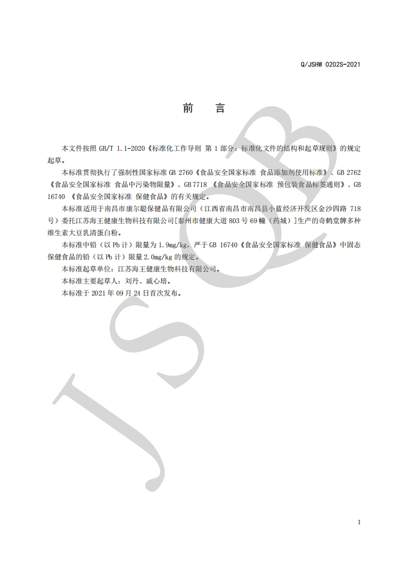 食品安全企业标准Q_JSHW0202S-2021奇鹤堂牌多种维生素大豆乳清蛋白粉348072@abc11天前发布关注私信0.26MB7页045食品安全企业标准Q_JSHW0202S-2021奇鹤堂牌多种维生素大豆乳清蛋白粉此内容为付费资源,请付费后查看¥19¥23黄金会员免费钻石会员免费立即购买您当前未登录!建议登陆后购买,可保存购买订单付费资源 第1页 / 共7页 第2页 / 共7页 第3页 / 共7页 第4页 / 共7页 第5页 / 共7页 试读已结束,还剩2页,您可下载完整版后进行离线阅读 THE END农学类标准规范餐饮美食 喜欢就支持一下吧收藏