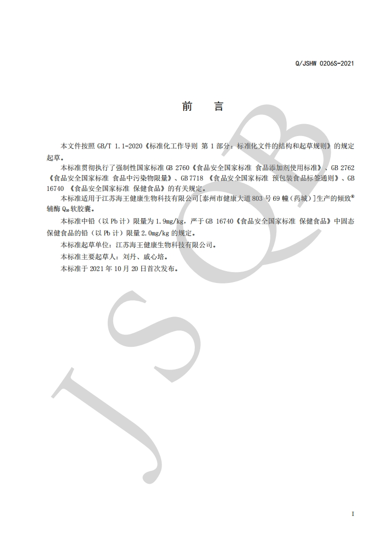 食品安全企业标准Q_JSHW0206S-2021倾致®辅酶Q10软胶囊348072@abc12天前发布关注私信0.26MB8页039食品安全企业标准Q_JSHW0206S-2021倾致®辅酶Q10软胶囊此内容为付费资源,请付费后查看¥19¥23黄金会员免费钻石会员免费立即购买您当前未登录!建议登陆后购买,可保存购买订单付费资源 第1页 / 共8页 第2页 / 共8页 第3页 / 共8页 第4页 / 共8页 第5页 / 共8页 试读已结束,还剩3页,您可下载完整版后进行离线阅读 THE END农学类标准规范餐饮美食 喜欢就支持一下吧收藏