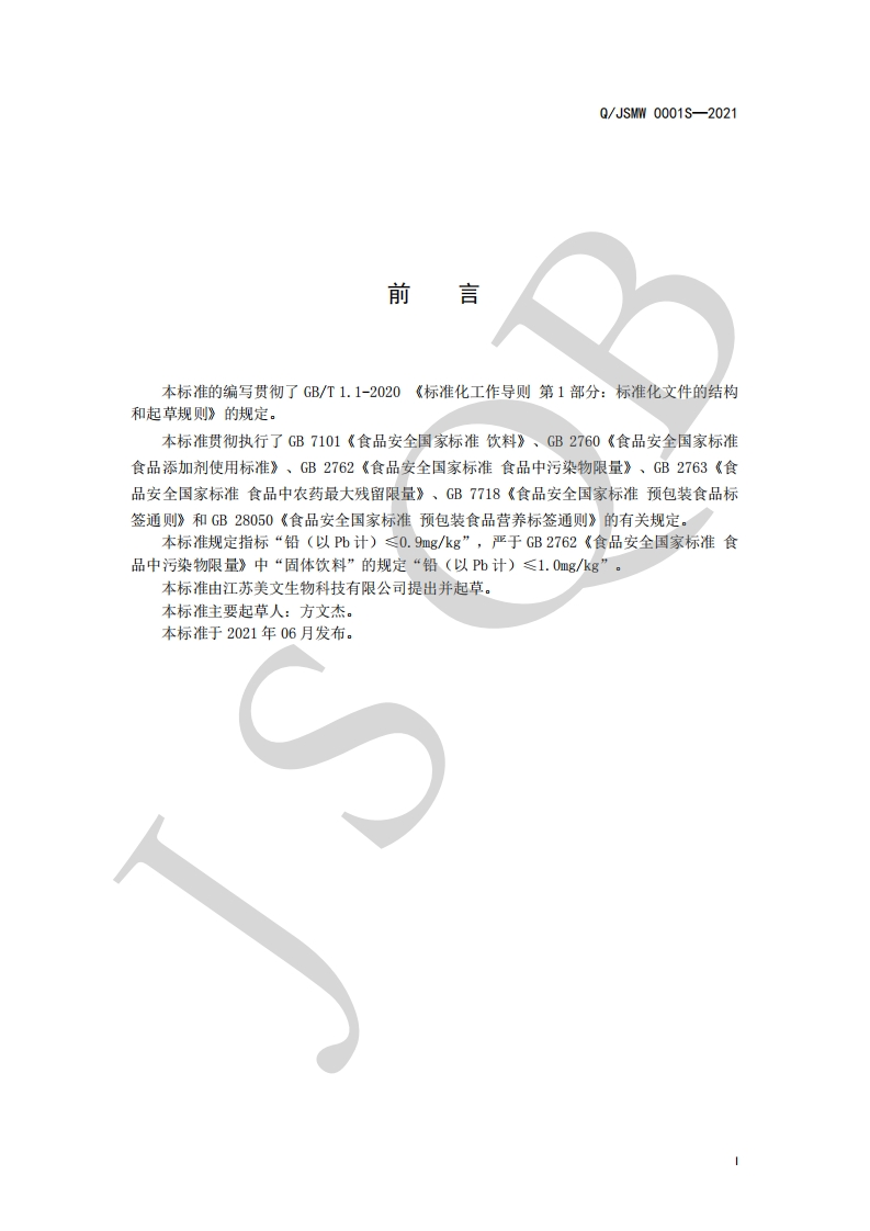 食品安全企业标准Q_JSMW0001S-2021桑椹覆盆子粉(固体饮料)348072@abc1个月前发布关注私信0.32MB6页026食品安全企业标准Q_JSMW0001S-2021桑椹覆盆子粉(固体饮料)此内容为付费资源,请付费后查看¥19¥23黄金会员免费钻石会员免费立即购买您当前未登录!建议登陆后购买,可保存购买订单付费资源 第1页 / 共6页 第2页 / 共6页 第3页 / 共6页 第4页 / 共6页 第5页 / 共6页 试读已结束,还剩1页,您可下载完整版后进行离线阅读 THE END播放器标准规范餐饮美食 喜欢就支持一下吧收藏