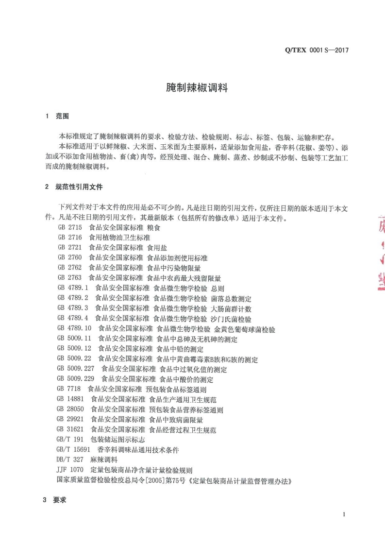 食品安全企业标准Q_TEX0001S-2017腌制辣椒调料348072@abc10天前发布关注私信0.81MB6页046食品安全企业标准Q_TEX0001S-2017腌制辣椒调料此内容为付费资源,请付费后查看¥13¥19黄金会员免费钻石会员免费立即购买您当前未登录!建议登陆后购买,可保存购买订单付费资源 第1页 / 共6页 第2页 / 共6页 第3页 / 共6页 第4页 / 共6页 试读已结束,还剩2页,您可下载完整版后进行离线阅读 THE END农学类标准规范餐饮美食 喜欢就支持一下吧收藏