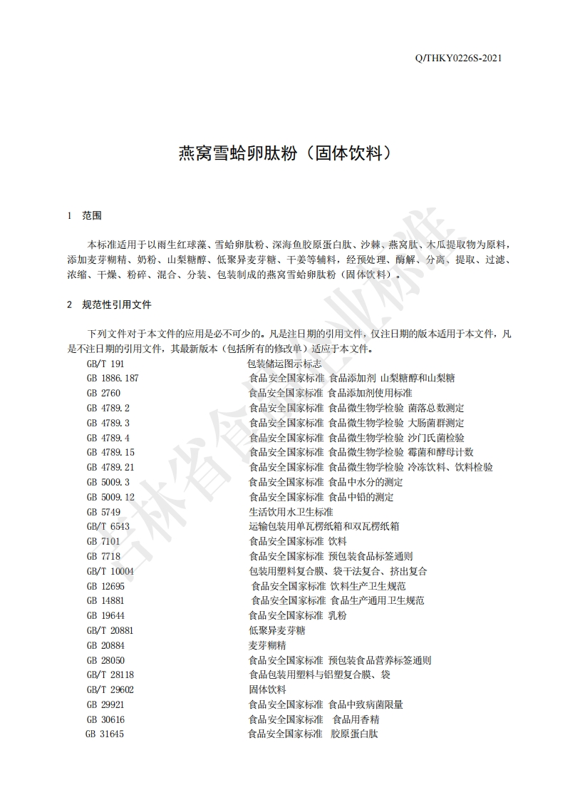 食品安全企业标准Q_THKY0226S-2021燕窝雪蛤卵肽粉(固体饮料)348072@abc9天前发布关注私信0.79MB6页032食品安全企业标准Q_THKY0226S-2021燕窝雪蛤卵肽粉(固体饮料)此内容为付费资源,请付费后查看¥13¥19黄金会员免费钻石会员免费立即购买您当前未登录!建议登陆后购买,可保存购买订单付费资源 第1页 / 共6页 第2页 / 共6页 第3页 / 共6页 第4页 / 共6页 试读已结束,还剩2页,您可下载完整版后进行离线阅读 THE END农学类标准规范餐饮美食 喜欢就支持一下吧收藏