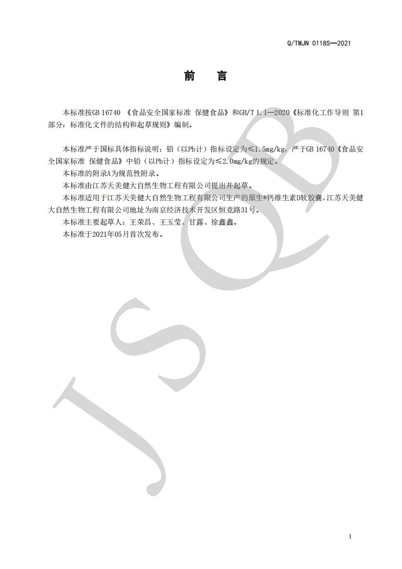 食品安全企业标准Q_TMJN0118S-2021原生®钙维生素D软胶囊348072@abc1个月前发布关注私信0.32MB8页035食品安全企业标准Q_TMJN0118S-2021原生®钙维生素D软胶囊此内容为付费资源,请付费后查看¥13¥19黄金会员免费钻石会员免费立即购买您当前未登录!建议登陆后购买,可保存购买订单付费资源 第1页 / 共8页 第2页 / 共8页 第3页 / 共8页 第4页 / 共8页 试读已结束,还剩4页,您可下载完整版后进行离线阅读 THE END播放器标准规范餐饮美食 喜欢就支持一下吧收藏