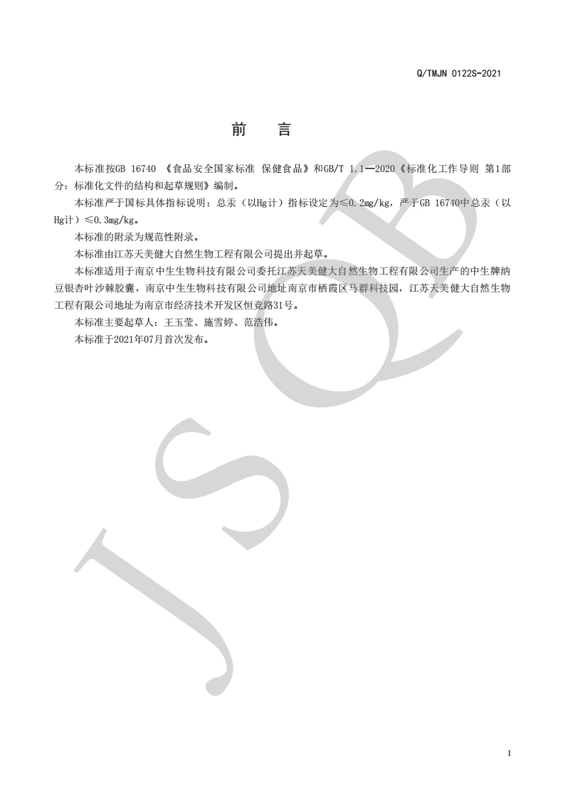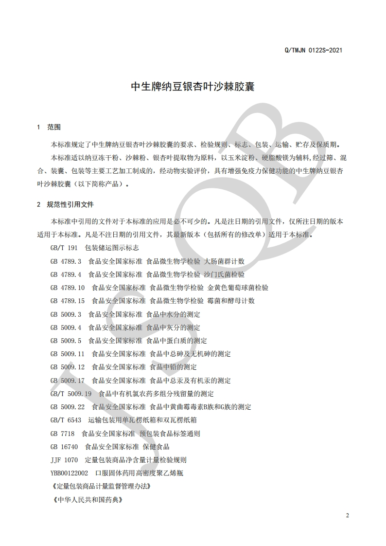 食品安全企业标准Q_TMJN0122S-2021中生牌纳豆银杏叶沙棘胶囊348072@abc1个月前发布关注私信0.30MB10页037食品安全企业标准Q_TMJN0122S-2021中生牌纳豆银杏叶沙棘胶囊此内容为付费资源,请付费后查看¥13¥19黄金会员免费钻石会员免费立即购买您当前未登录!建议登陆后购买,可保存购买订单付费资源 第1页 / 共10页 第2页 / 共10页 第3页 / 共10页 第4页 / 共10页 试读已结束,还剩6页,您可下载完整版后进行离线阅读 THE END播放器标准规范餐饮美食 喜欢就支持一下吧收藏