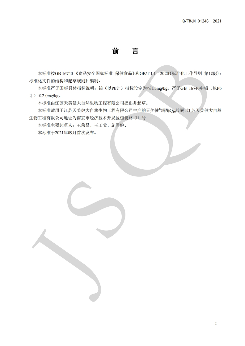 食品安全企业标准Q_TMJN0124S-2021天美健®辅酶Q10胶囊348072@abc1个月前发布关注私信0.32MB7页031食品安全企业标准Q_TMJN0124S-2021天美健®辅酶Q10胶囊此内容为付费资源,请付费后查看¥13¥19黄金会员免费钻石会员免费立即购买您当前未登录!建议登陆后购买,可保存购买订单付费资源 第1页 / 共7页 第2页 / 共7页 第3页 / 共7页 第4页 / 共7页 试读已结束,还剩3页,您可下载完整版后进行离线阅读 THE END播放器标准规范餐饮美食 喜欢就支持一下吧收藏