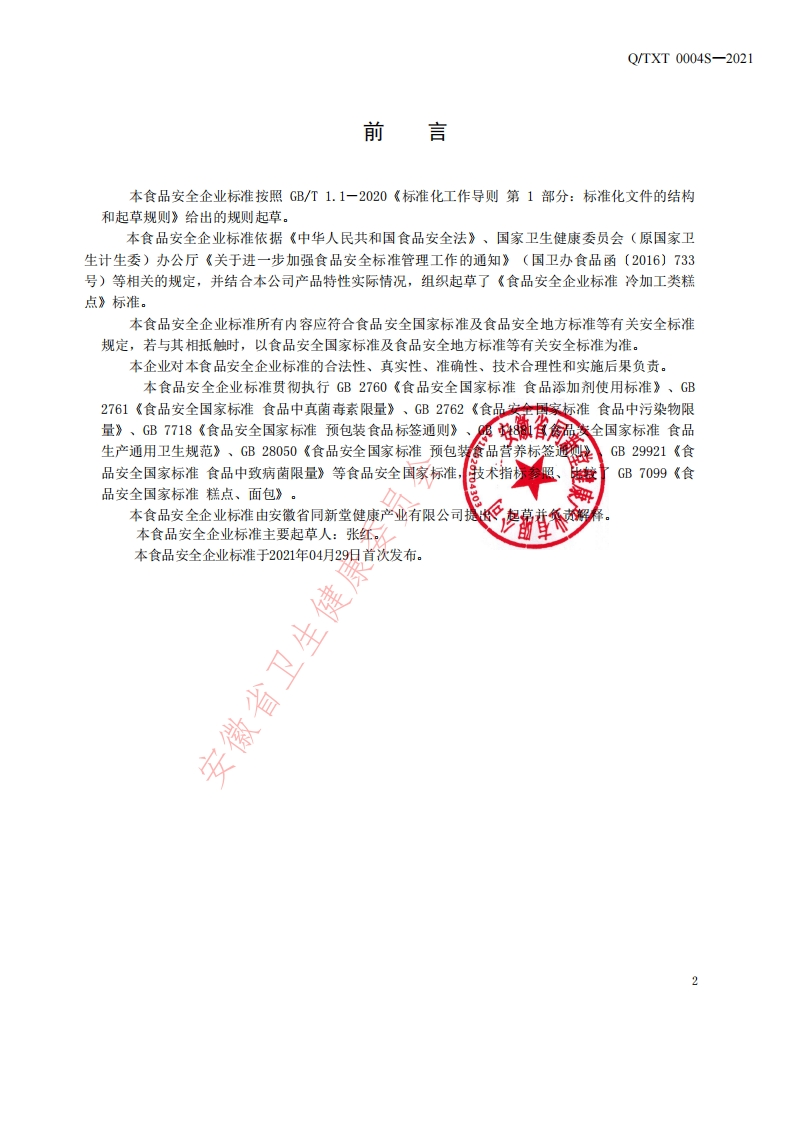 食品安全企业标准Q_TXT0004S-2021冷加工类糕点348072@abc1个月前发布关注私信0.31MB9页026食品安全企业标准Q_TXT0004S-2021冷加工类糕点此内容为付费资源,请付费后查看¥13¥19黄金会员免费钻石会员免费立即购买您当前未登录!建议登陆后购买,可保存购买订单付费资源 第1页 / 共9页 第2页 / 共9页 第3页 / 共9页 第4页 / 共9页 试读已结束,还剩5页,您可下载完整版后进行离线阅读 THE END播放器标准规范餐饮美食 喜欢就支持一下吧收藏