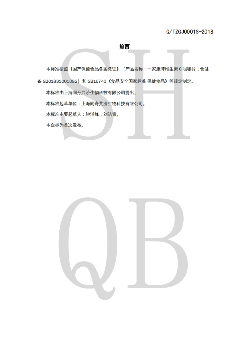 食品安全企业标准Q_TZGJ0001S-2018一家康牌维生素C咀嚼片348072@abc1个月前发布关注私信0.19MB8页027食品安全企业标准Q_TZGJ0001S-2018一家康牌维生素C咀嚼片此内容为付费资源,请付费后查看¥13¥19黄金会员免费钻石会员免费立即购买您当前未登录!建议登陆后购买,可保存购买订单付费资源 第1页 / 共8页 第2页 / 共8页 第3页 / 共8页 第4页 / 共8页 试读已结束,还剩4页,您可下载完整版后进行离线阅读 THE END播放器标准规范餐饮美食 喜欢就支持一下吧收藏