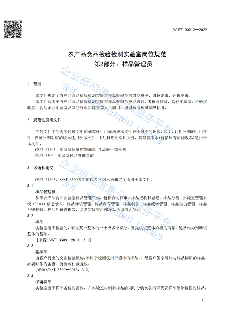 食品安全企业标准Q_UFT002.2-2022农产品食品检验检测实验室岗位规范第2部分:样品管理员348072@abc1个月前发布关注私信0.57MB7页029食品安全企业标准Q_UFT002.2-2022农产品食品检验检测实验室岗位规范第2部分:样品管理员此内容为付费资源,请付费后查看¥13¥19黄金会员免费钻石会员免费立即购买您当前未登录!建议登陆后购买,可保存购买订单付费资源 第1页 / 共7页 第2页 / 共7页 第3页 / 共7页 第4页 / 共7页 试读已结束,还剩3页,您可下载完整版后进行离线阅读 THE END播放器标准规范餐饮美食 喜欢就支持一下吧收藏