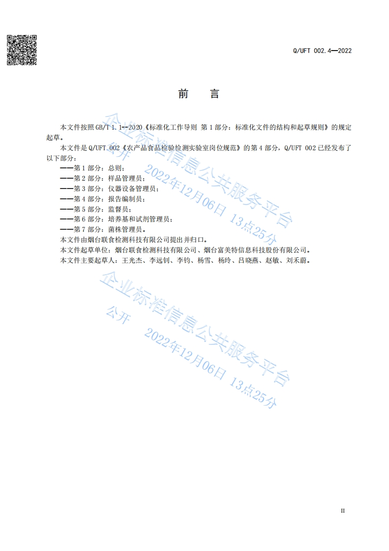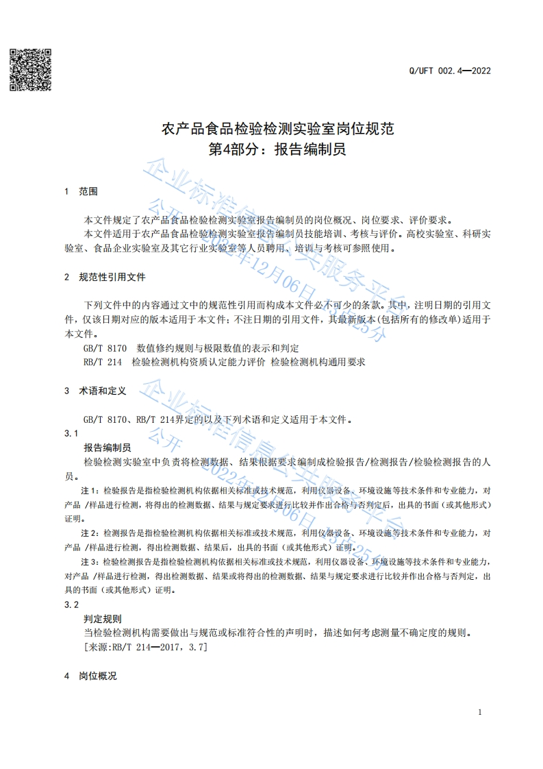 食品安全企业标准Q_UFT002.4-2022农产品食品检验检测实验室岗位规范第4部分:报告编制员348072@abc1个月前发布关注私信0.56MB6页038食品安全企业标准Q_UFT002.4-2022农产品食品检验检测实验室岗位规范第4部分:报告编制员此内容为付费资源,请付费后查看¥13¥19黄金会员免费钻石会员免费立即购买您当前未登录!建议登陆后购买,可保存购买订单付费资源 第1页 / 共6页 第2页 / 共6页 第3页 / 共6页 第4页 / 共6页 试读已结束,还剩2页,您可下载完整版后进行离线阅读 THE END播放器标准规范餐饮美食 喜欢就支持一下吧收藏