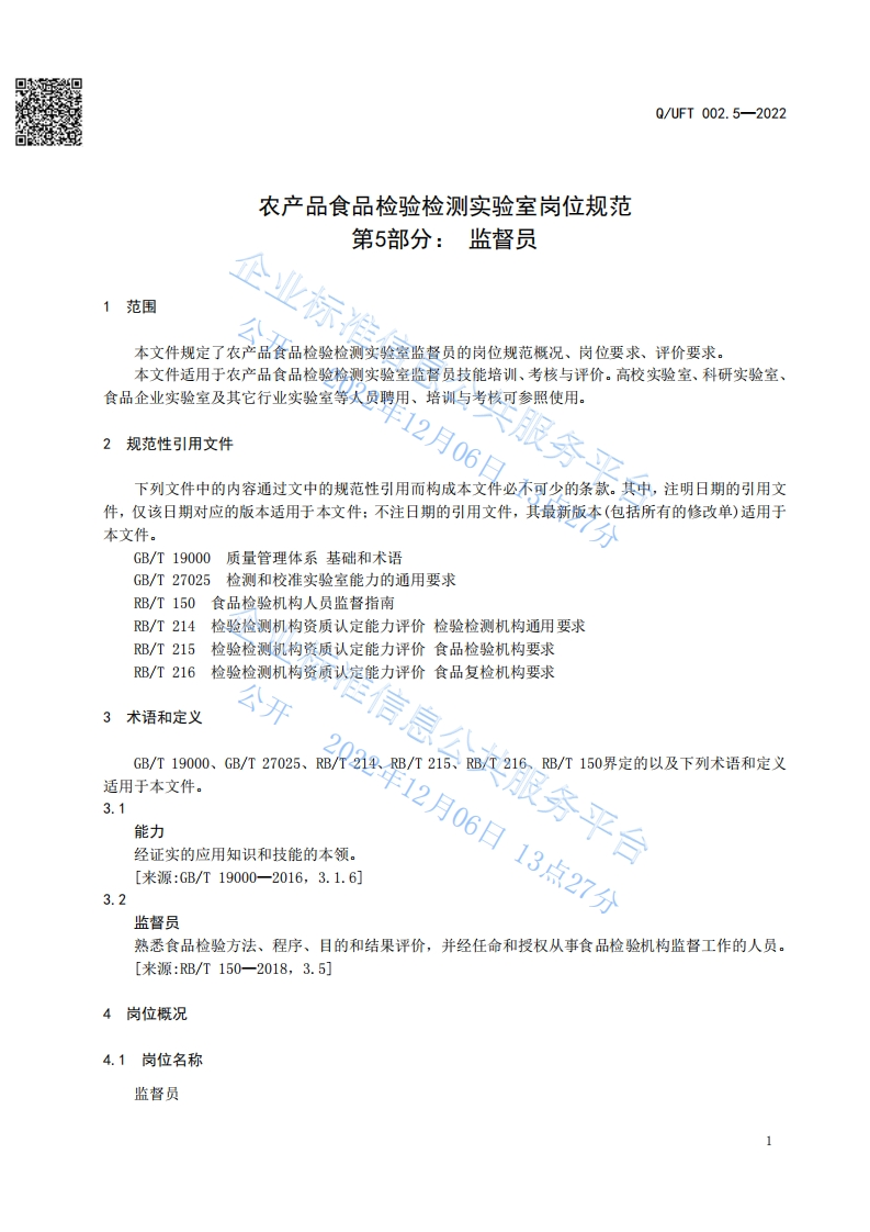 食品安全企业标准Q_UFT002.5-2022农产品食品检验检测实验室岗位规范第5部分:监督员348072@abc1个月前发布关注私信0.56MB6页049食品安全企业标准Q_UFT002.5-2022农产品食品检验检测实验室岗位规范第5部分:监督员此内容为付费资源,请付费后查看¥13¥19黄金会员免费钻石会员免费立即购买您当前未登录!建议登陆后购买,可保存购买订单付费资源 第1页 / 共6页 第2页 / 共6页 第3页 / 共6页 第4页 / 共6页 试读已结束,还剩2页,您可下载完整版后进行离线阅读 THE END播放器标准规范餐饮美食 喜欢就支持一下吧收藏