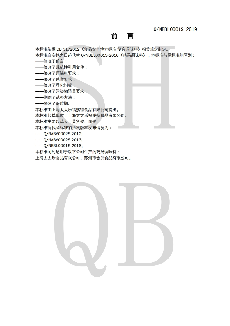 食品安全企业标准Q_NBBL0001S-2019鸡汤调味料348072@abc8天前发布关注私信0.20MB6页049食品安全企业标准Q_NBBL0001S-2019鸡汤调味料此内容为付费资源,请付费后查看¥17¥19黄金会员免费钻石会员免费立即购买您当前未登录!建议登陆后购买,可保存购买订单付费资源 第1页 / 共6页 第2页 / 共6页 第3页 / 共6页 第4页 / 共6页 试读已结束,还剩2页,您可下载完整版后进行离线阅读 THE END农学类标准规范餐饮美食 喜欢就支持一下吧收藏