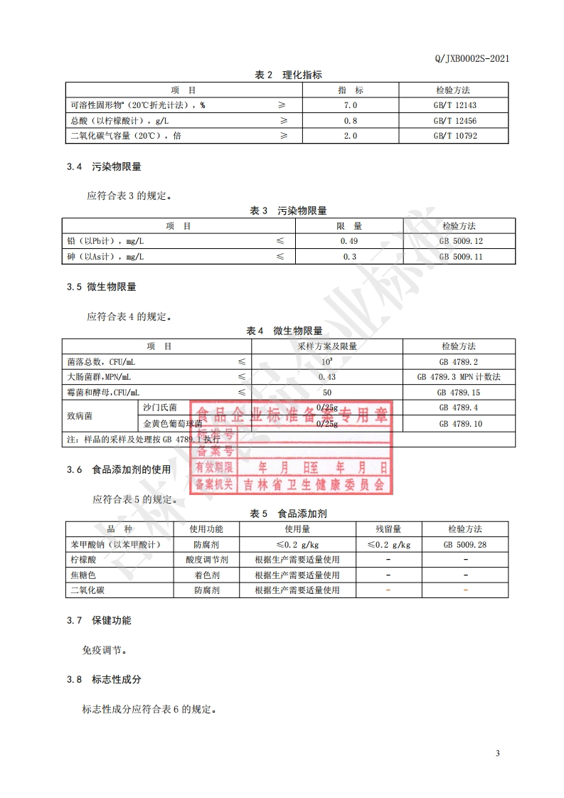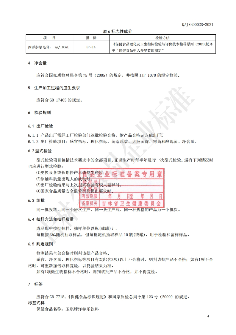 食品安全企业标准Q_JXB0002S-2021保健食品玉琪牌洋参乐饮料348072@abc1个月前发布关注私信0.78MB6页031食品安全企业标准Q_JXB0002S-2021保健食品玉琪牌洋参乐饮料此内容为付费资源,请付费后查看¥17¥19黄金会员免费钻石会员免费立即购买您当前未登录!建议登陆后购买,可保存购买订单付费资源 第1页 / 共6页 第2页 / 共6页 第3页 / 共6页 第4页 / 共6页 第5页 / 共6页 试读已结束,还剩1页,您可下载完整版后进行离线阅读 THE END播放器标准规范餐饮美食 喜欢就支持一下吧收藏